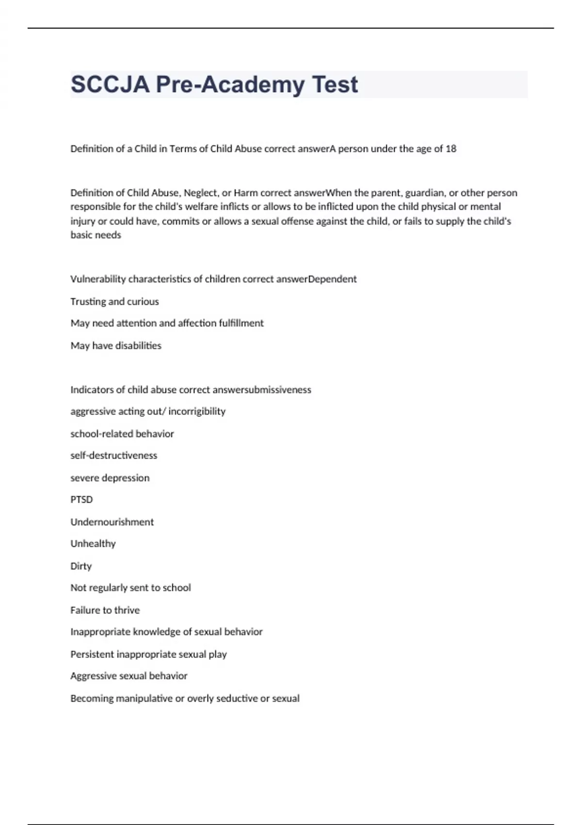 SCCJA Pre-Academy Test exam 2023 with 100% correct answers