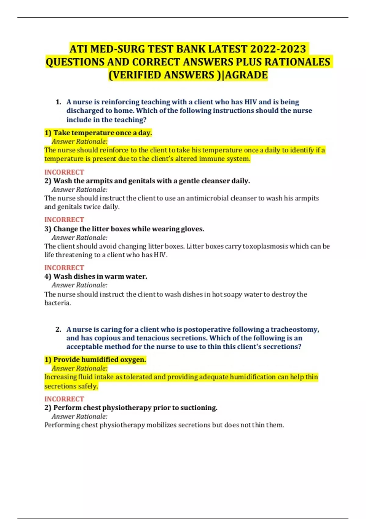 ati med surg test bank latest 2022 2023 questions and correct answers plus rationales verified answers |agrade