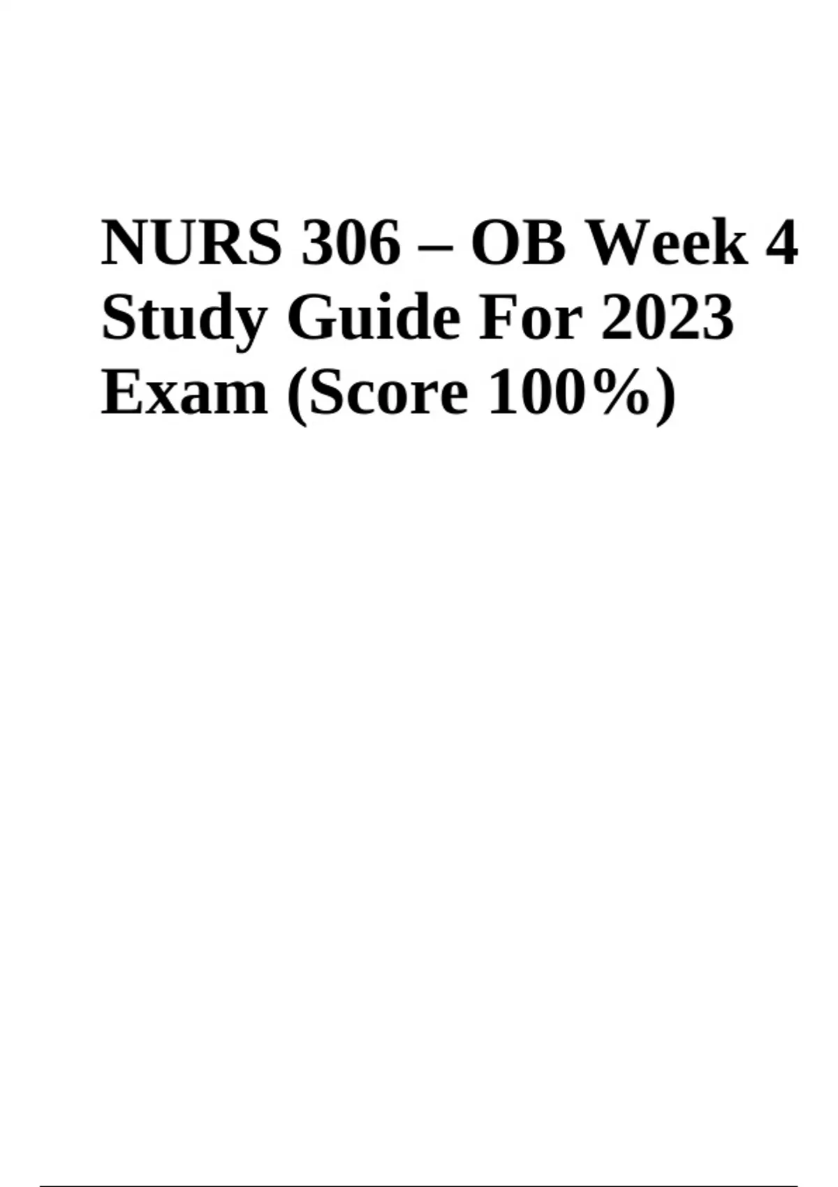 Summary NURS 306 OB Exam Study Guide 2023 (Score 100%)