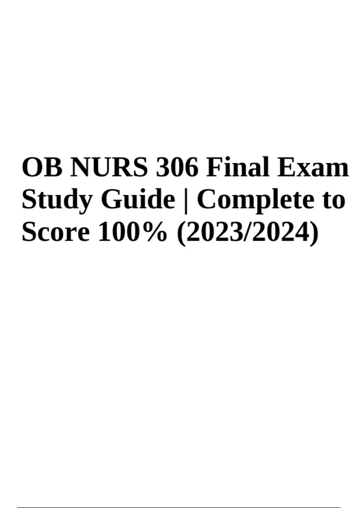 OB NURS 306 Final Exam Study Guide | Complete to Score A+ 2023
