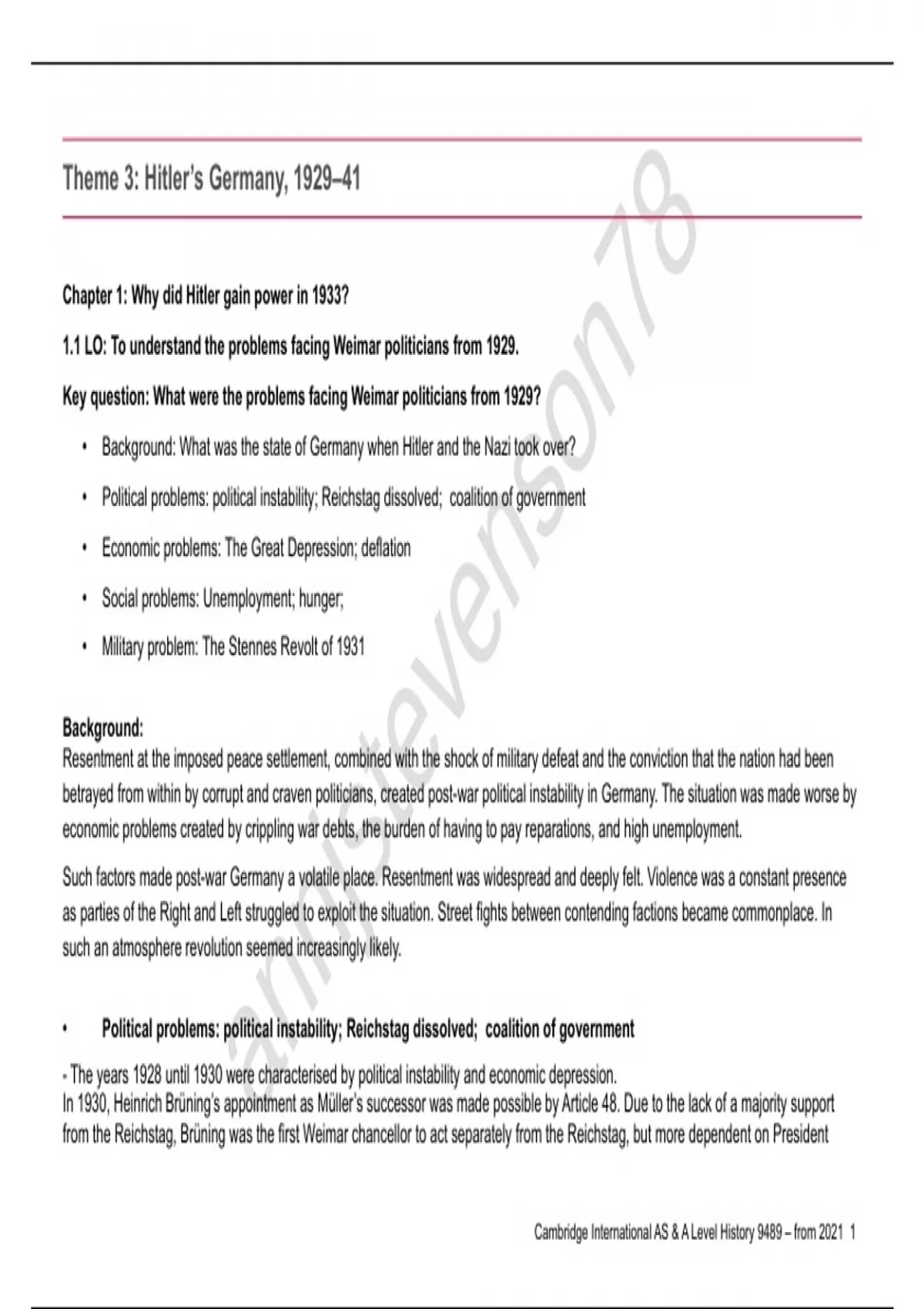 1.1 LO: To understand the problems facing Weimar politicians from 1929.