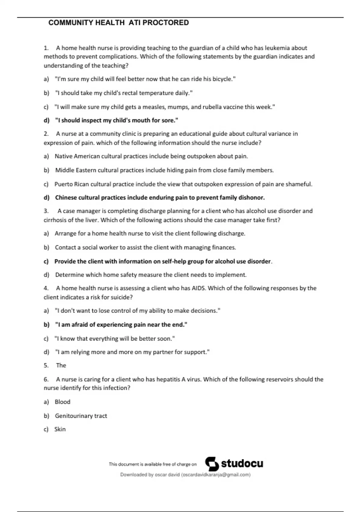 ati rn community health 2019 proctored exam version 1 a graded 100 verified