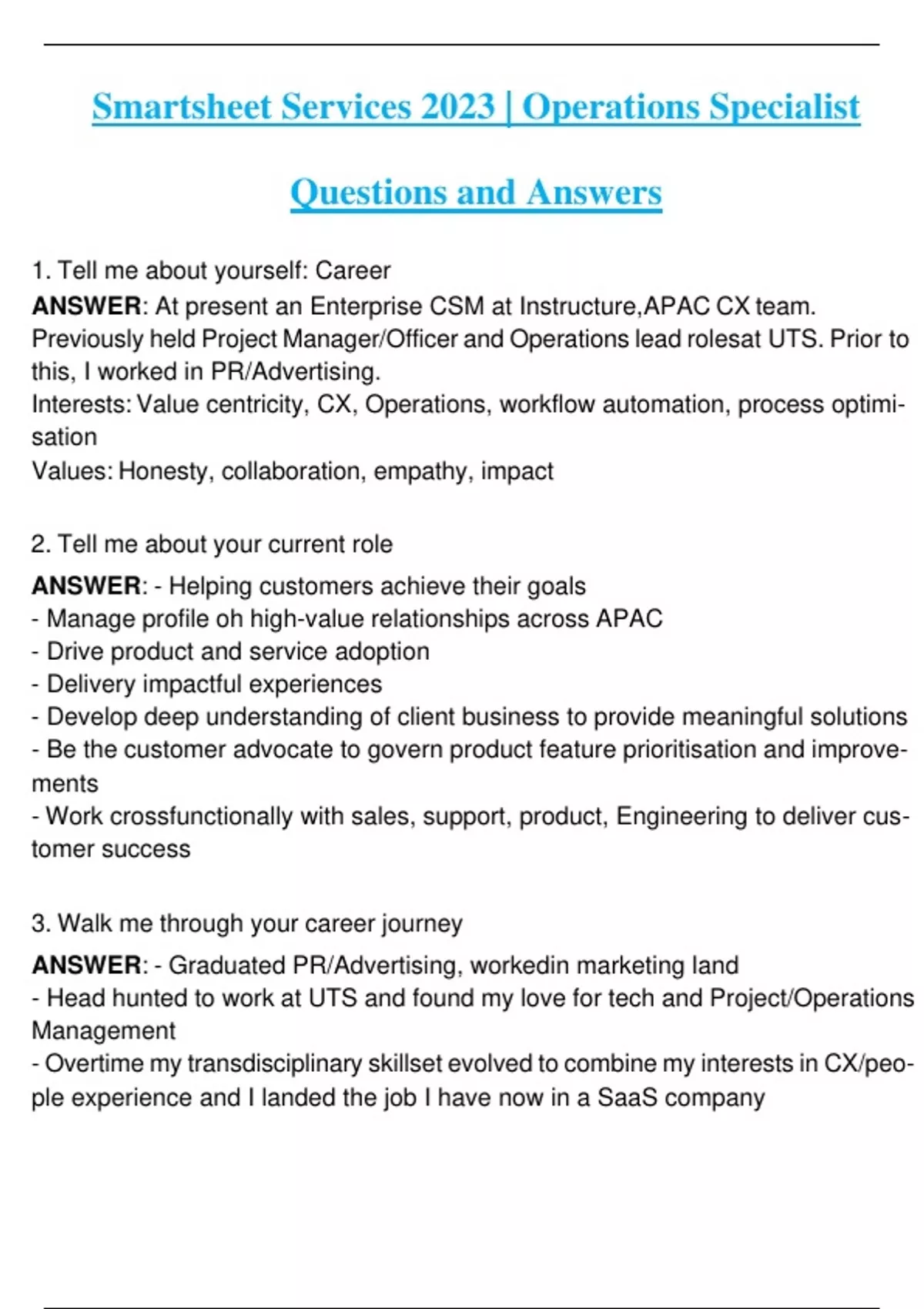 Smartsheet Services 2023 | Operations Specialist Questions and Answers