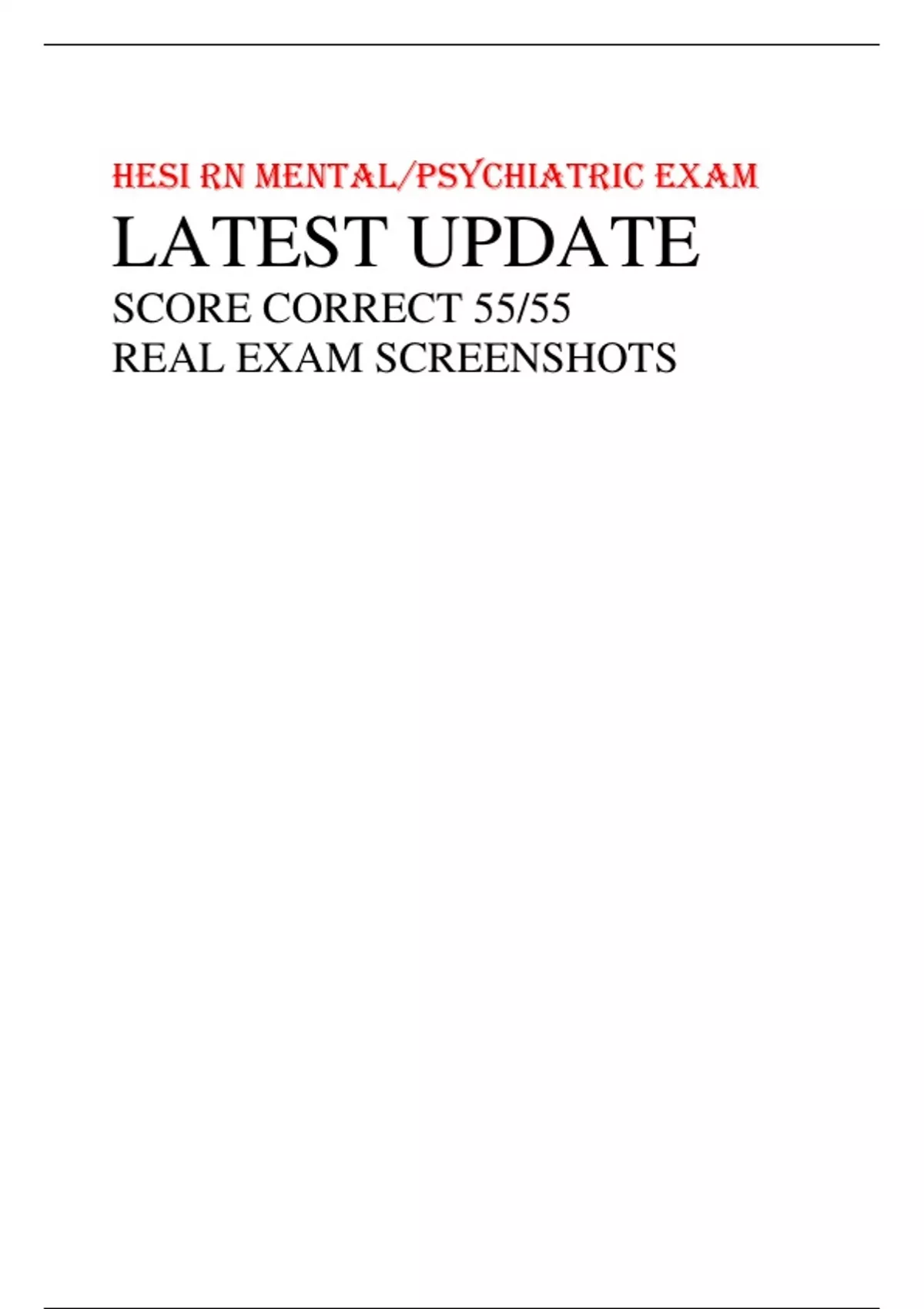 hesi rn mentalpsychiatric exam latest update score correct 5555 real exam screenshots what to expect on this file samplepreview