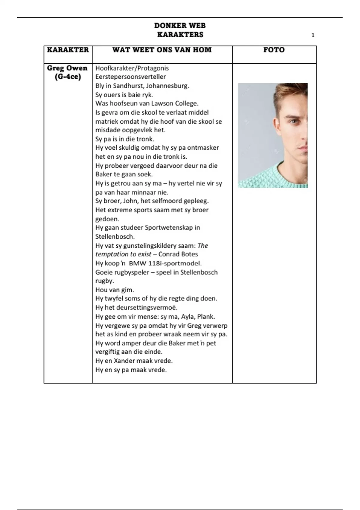 Volledige opsomming van al die karakters in Donker Web met foto's.