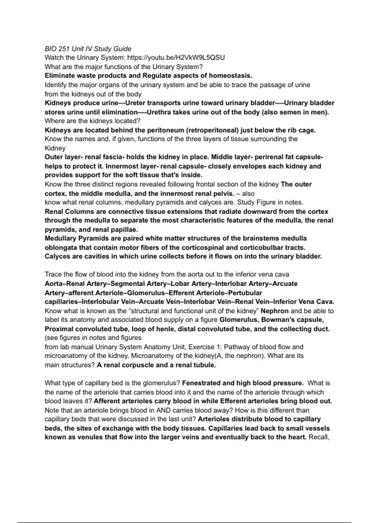 Urinary and Reproductive system study guide