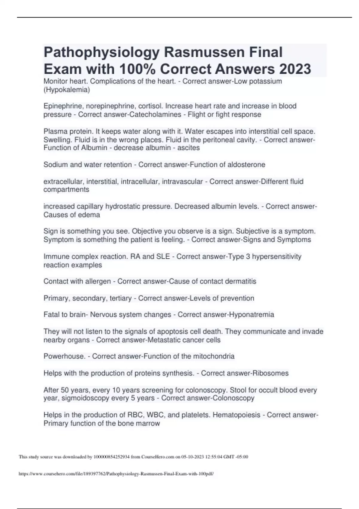 Pathophysiology Rasmussen Final Exam with 100% Correct Answers 2023