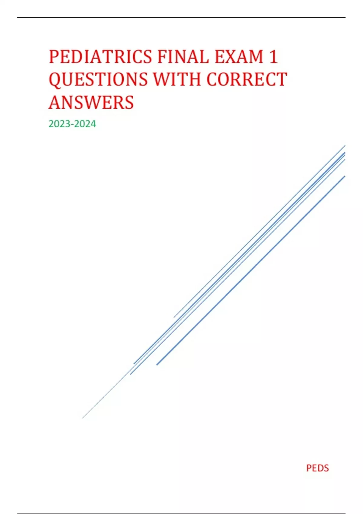 PEDIATRICS FINAL EXAM 1 QUESTIONS WITH CORRECT ANSWERS