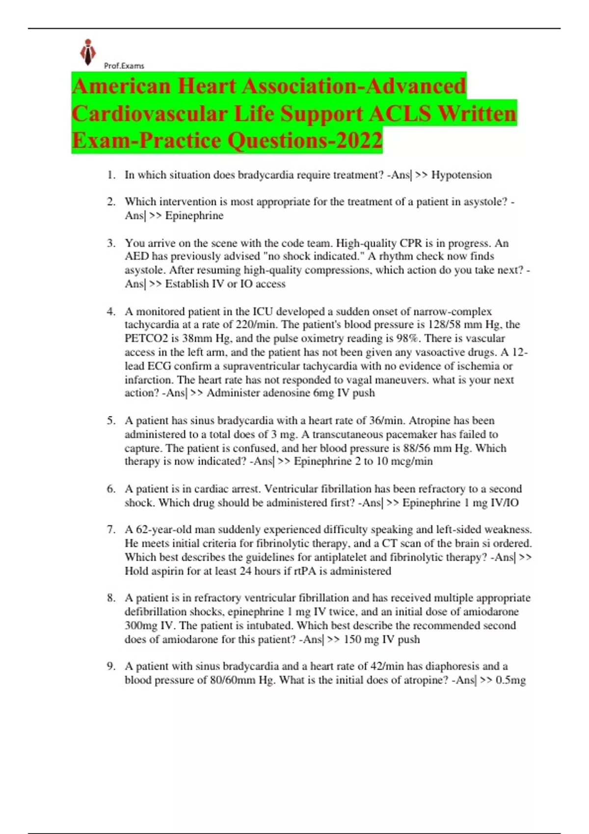 SOLVED- ELABORATED-American Heart Association-Advanced Cardiovascular Life Support ACLS Written Exam-Practice Questions-2022