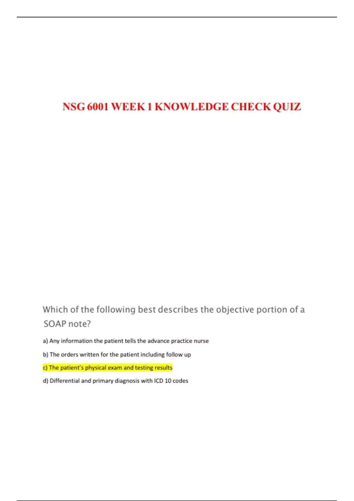 NSG 6001 WEEK 1 KNOWLEDGE CHECK QUIZ