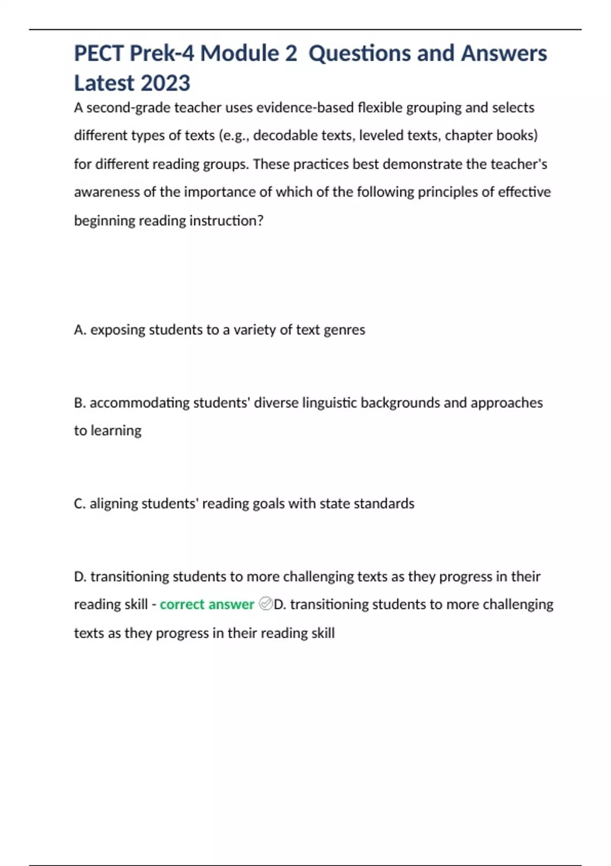 PECT Prek-4 Module 2 Questions and Answers Latest 2023
