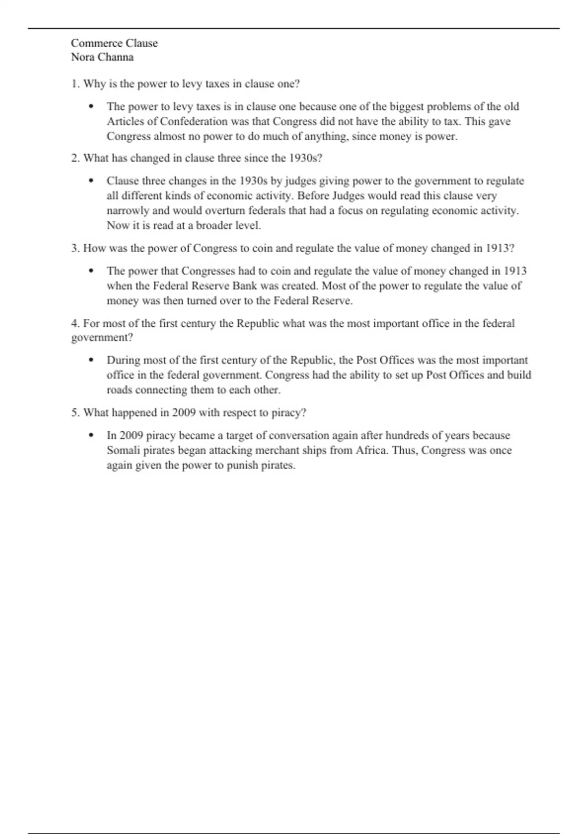 Informational questions and answers on Commerce Clause and what it is.
