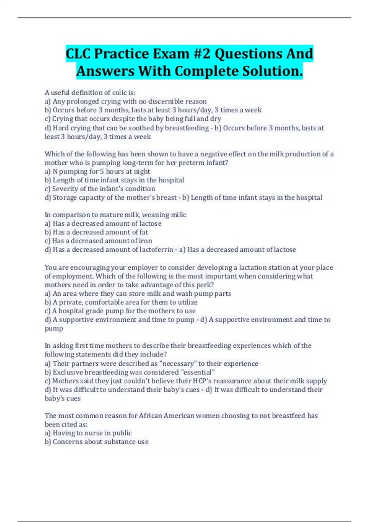 CLC Practice Exam #2 Questions And Answers With Complete Solution.