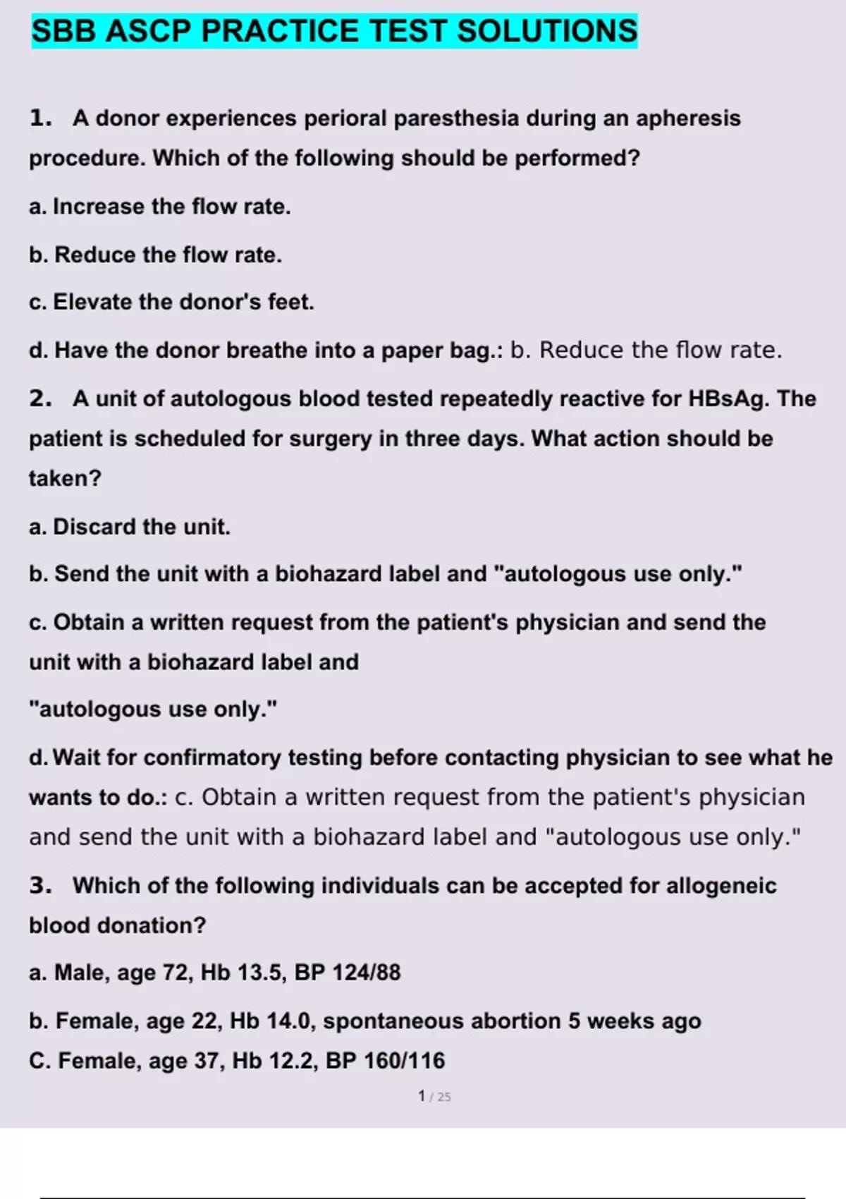 SBB ASCP PRACTICE TEST SOLUTIONS QUESTIONS AND ANSWERS A+ GRADED