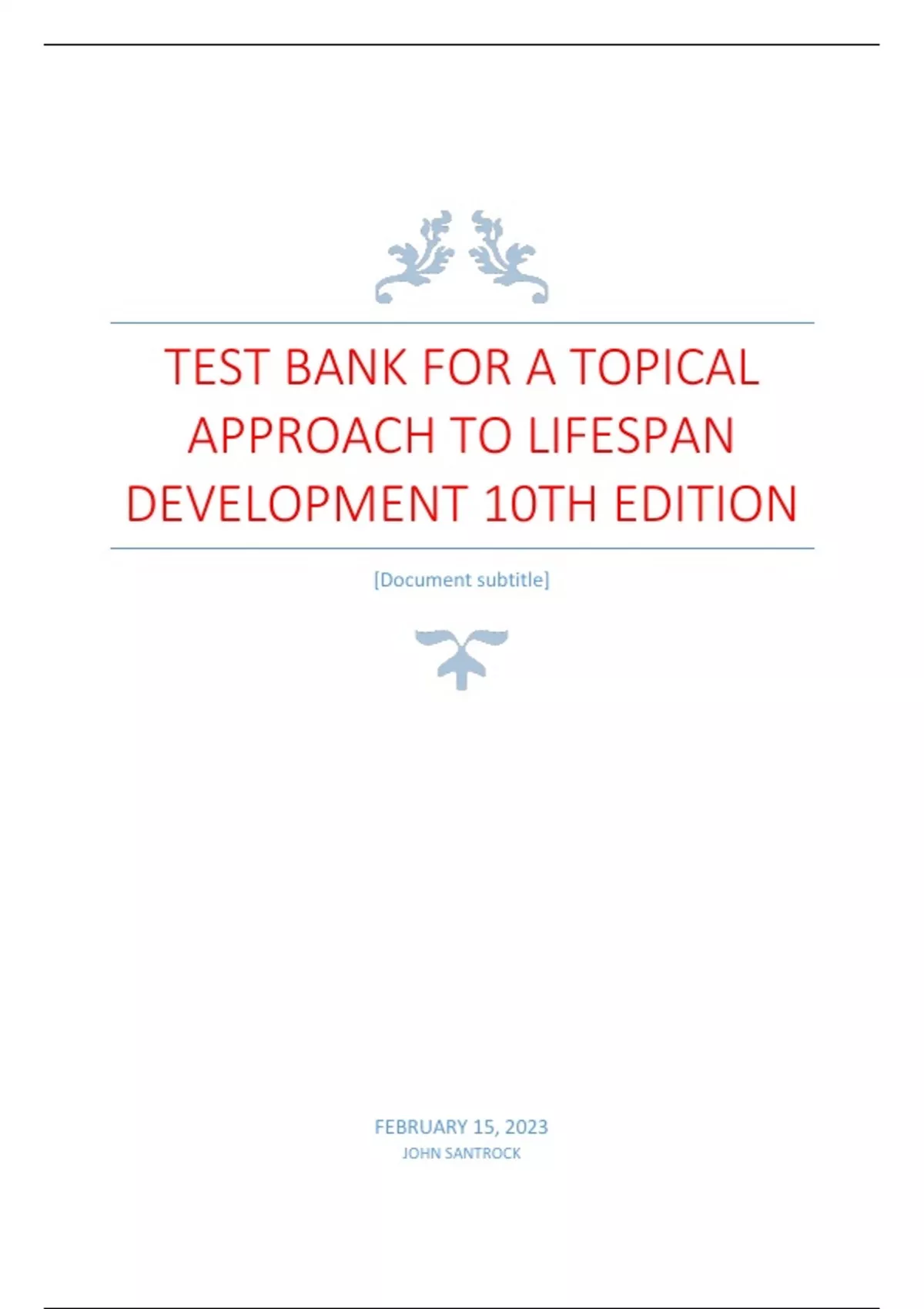 test bank for a topical approach to lifespan development 10th edition by john santrockpdf