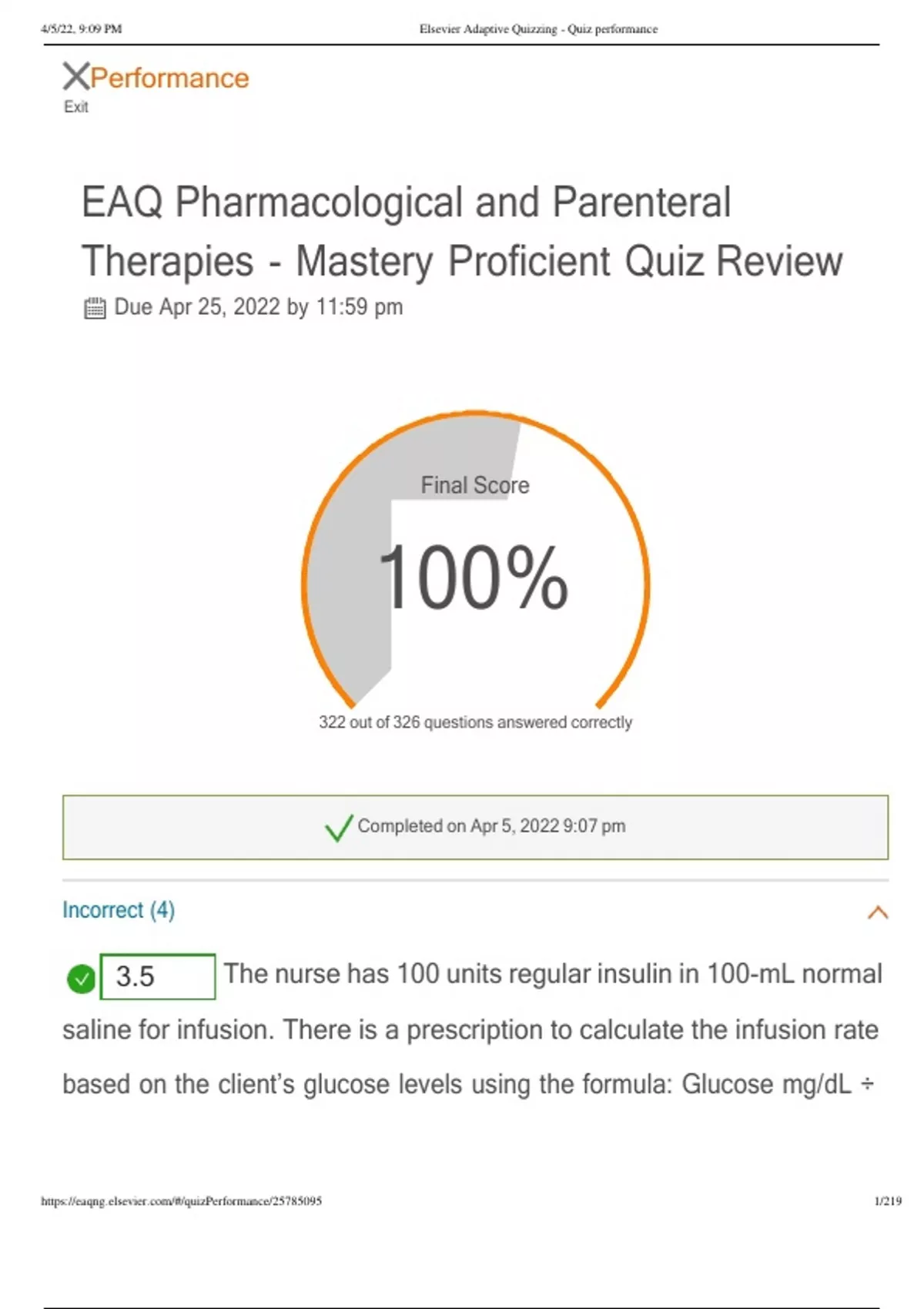 exit performance eaq pharmacological and parenteral therapies mastery proficient quiz review due apr 25