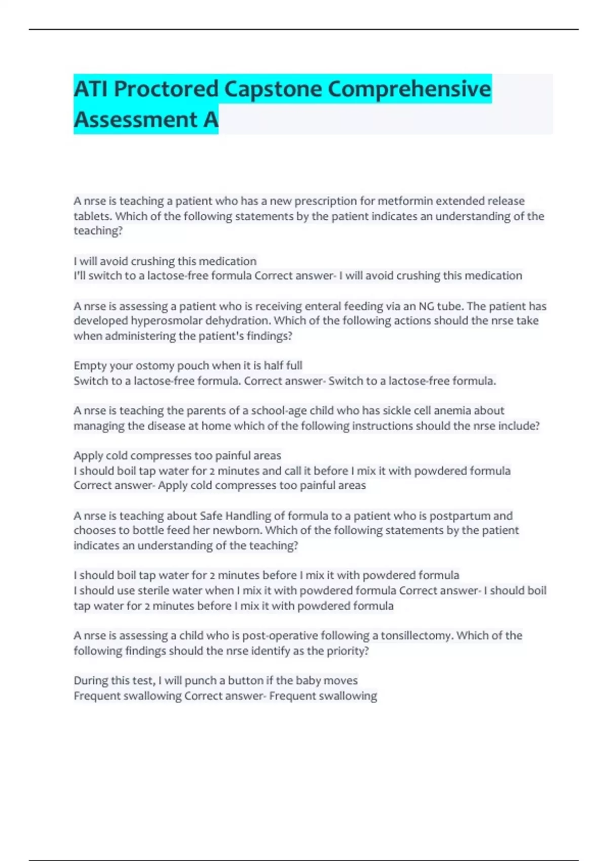 ati proctored capstone comprehensive assessment a