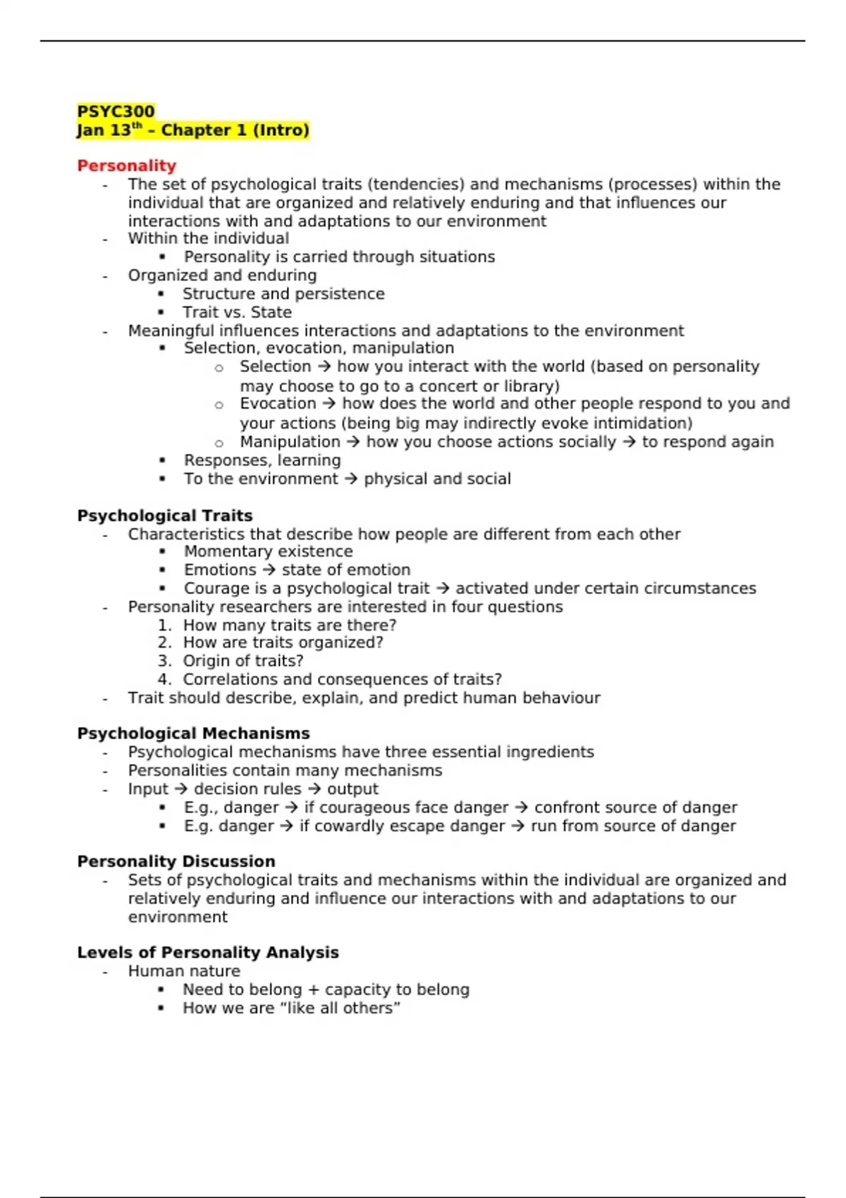 Explore the theories, concepts, and research methods that contribute to our understanding of human personality. Dive into the exploration of personality traits, development, and their impact on behaviour and relationships. These notes provide a concise overview, inviting you to explore the dynamic field of personality psychology and gain valuable insights into the complexities of human nature.