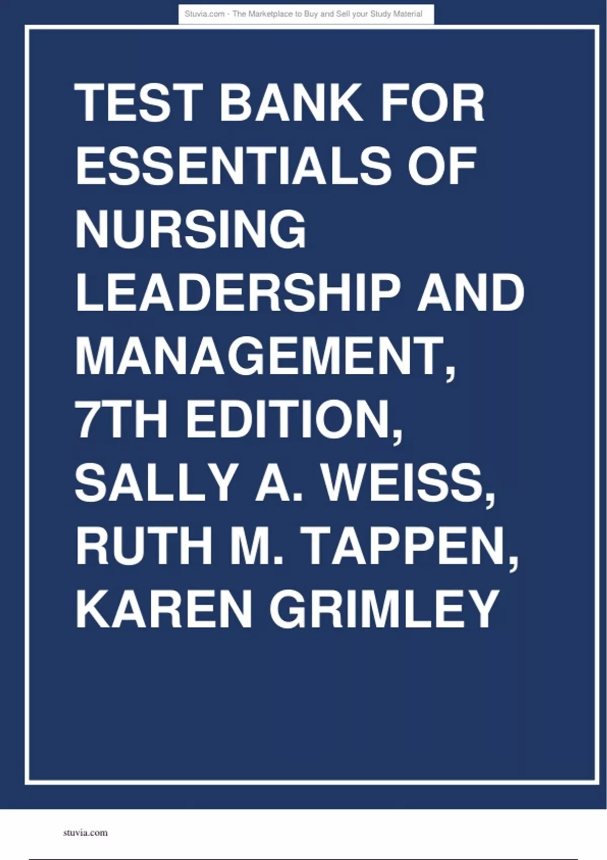 Test Bank Essentials of Nursing Leadership & Management 7th Edition Sally A. Weiss Ruth M. Tappen