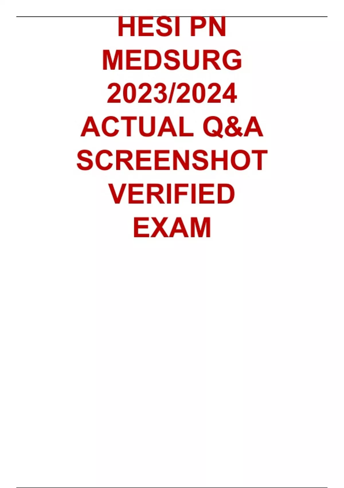 HESI PN MEDSURG 2023/2024 ACTUAL Q&A SCREENSHOTS VERIFIED EXAM