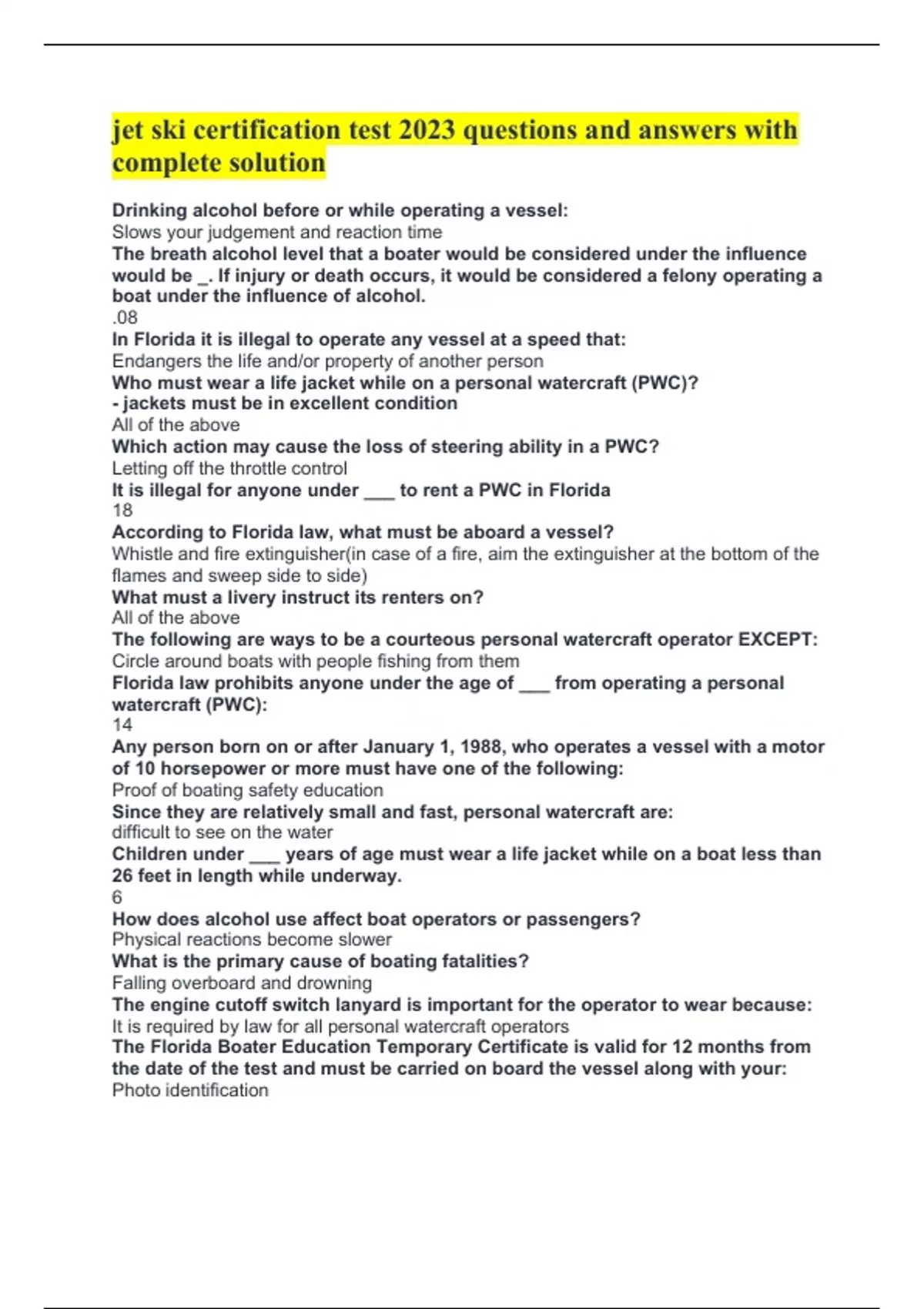 It is required by law for all personal watercraft operators