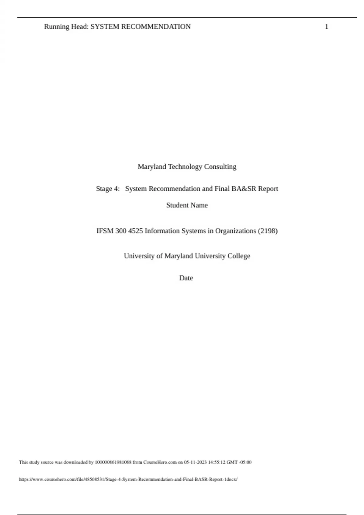 Exam (elaborations) IFSM 300 Stage 4 System Recommendation and Final BA&SR Report