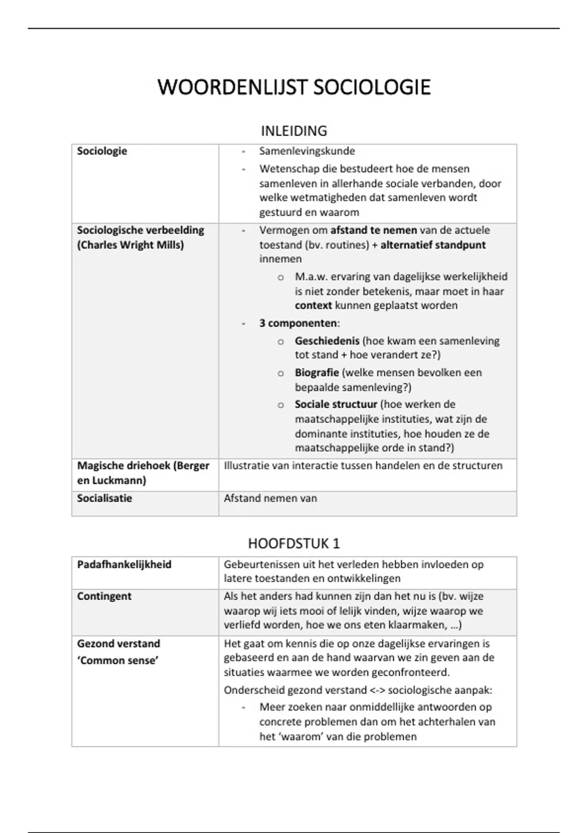 WOORDENLIJST SOCIOLOGIE