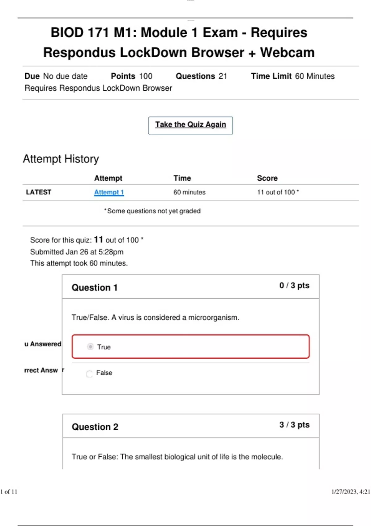 BIOD 171 M1: Module 1 Exam - Requires Respondus LockDown Browser + Webcam