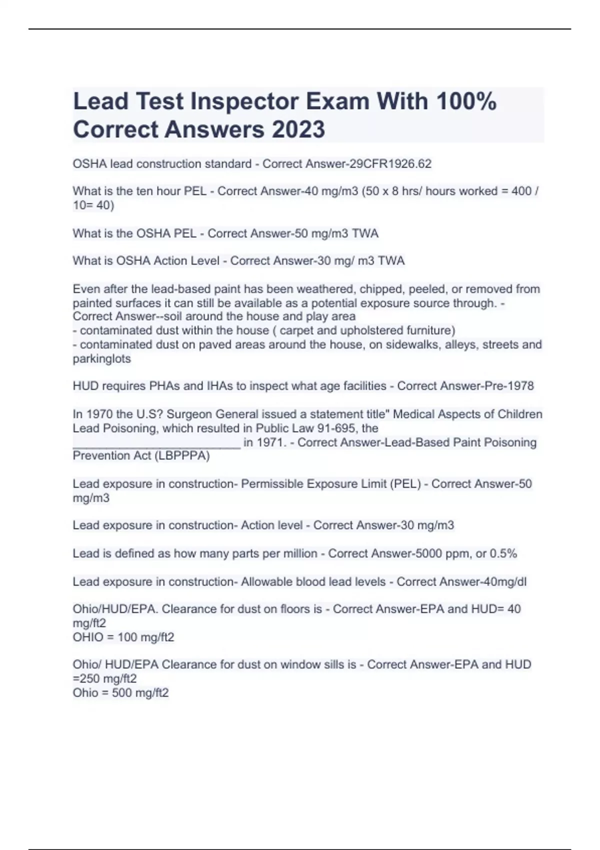 Lead Test Inspector Exam With 100% Correct Answers 2023