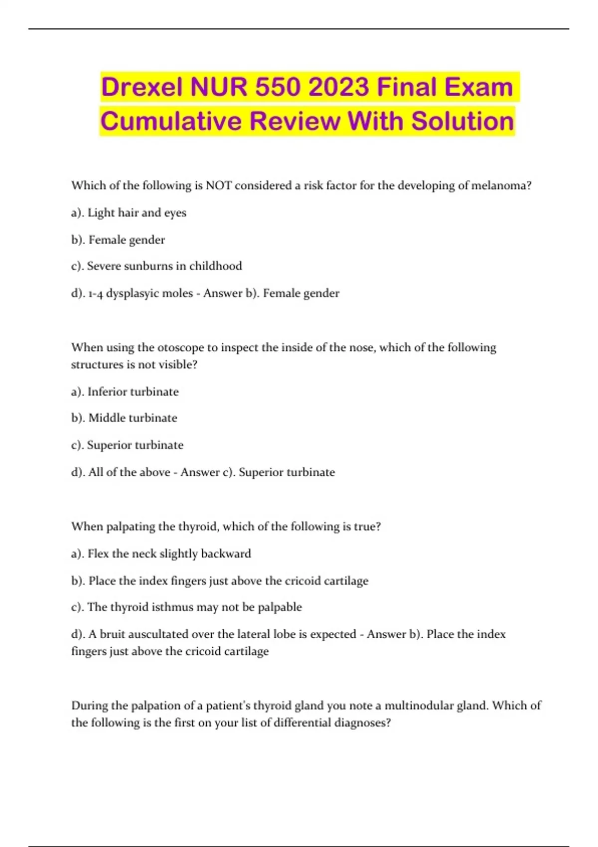 Drexel NUR 550 2023 Final Exam Cumulative Review With Solution...