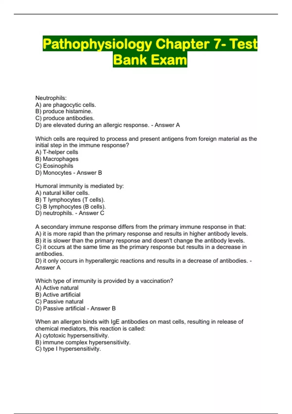 Pathophysiology Chapter 7- Test Bank Exam...