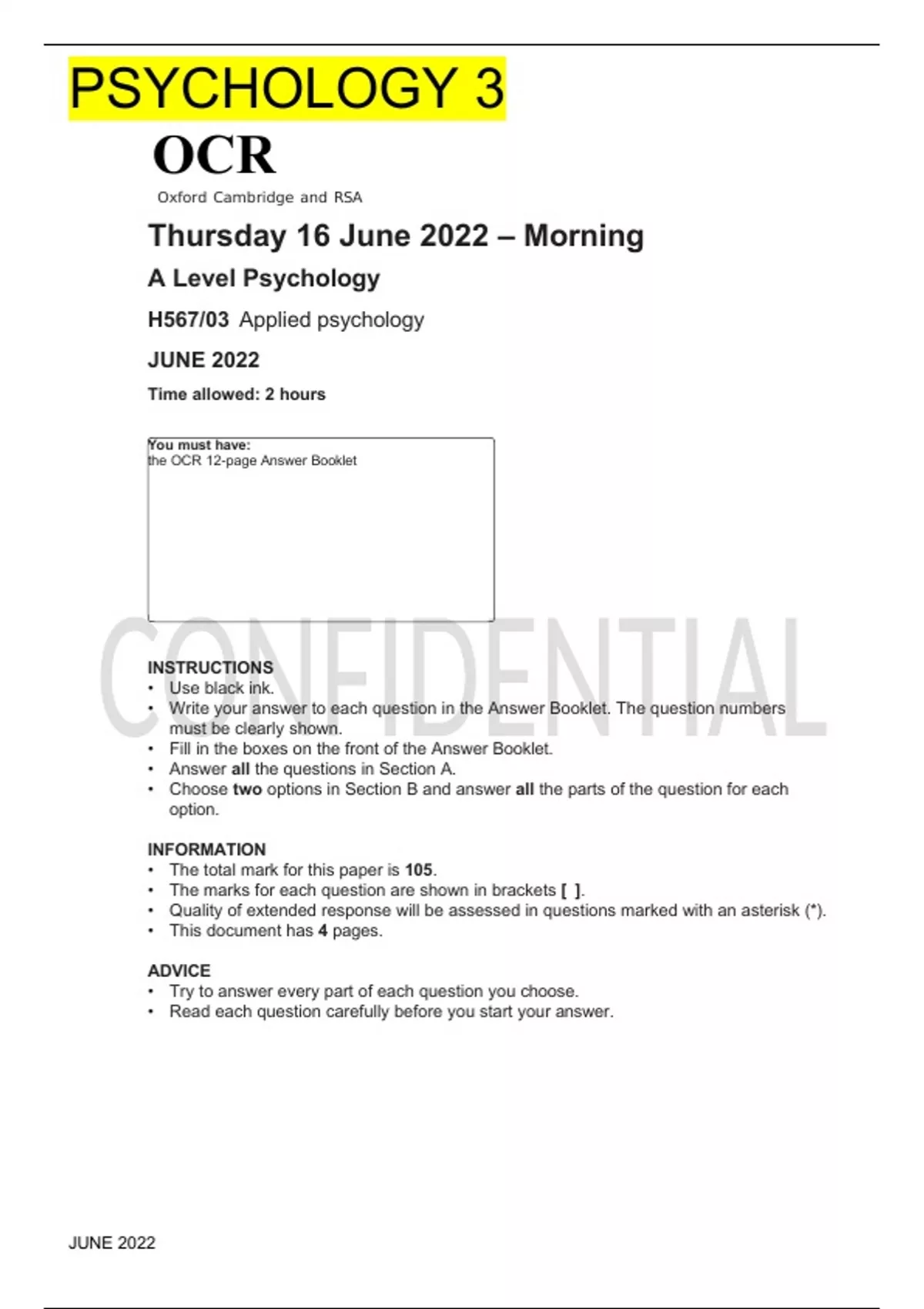 OCR A Level Psychology H567/03 JUNE 2022 ACTUAL QUESTION PAPER >Applied psychology .