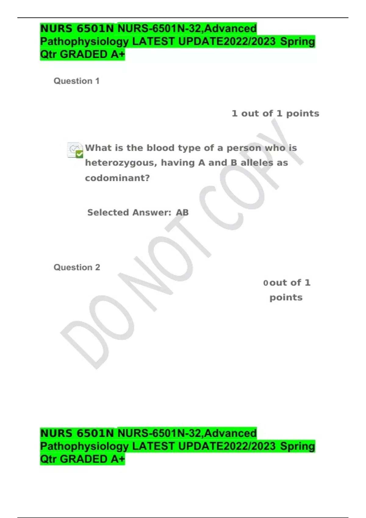 NURS 6501N NURS-6501N-32,Advanced Pathophysiology LATEST UPDATE2022/2023 Spring Qtr GRADED A+