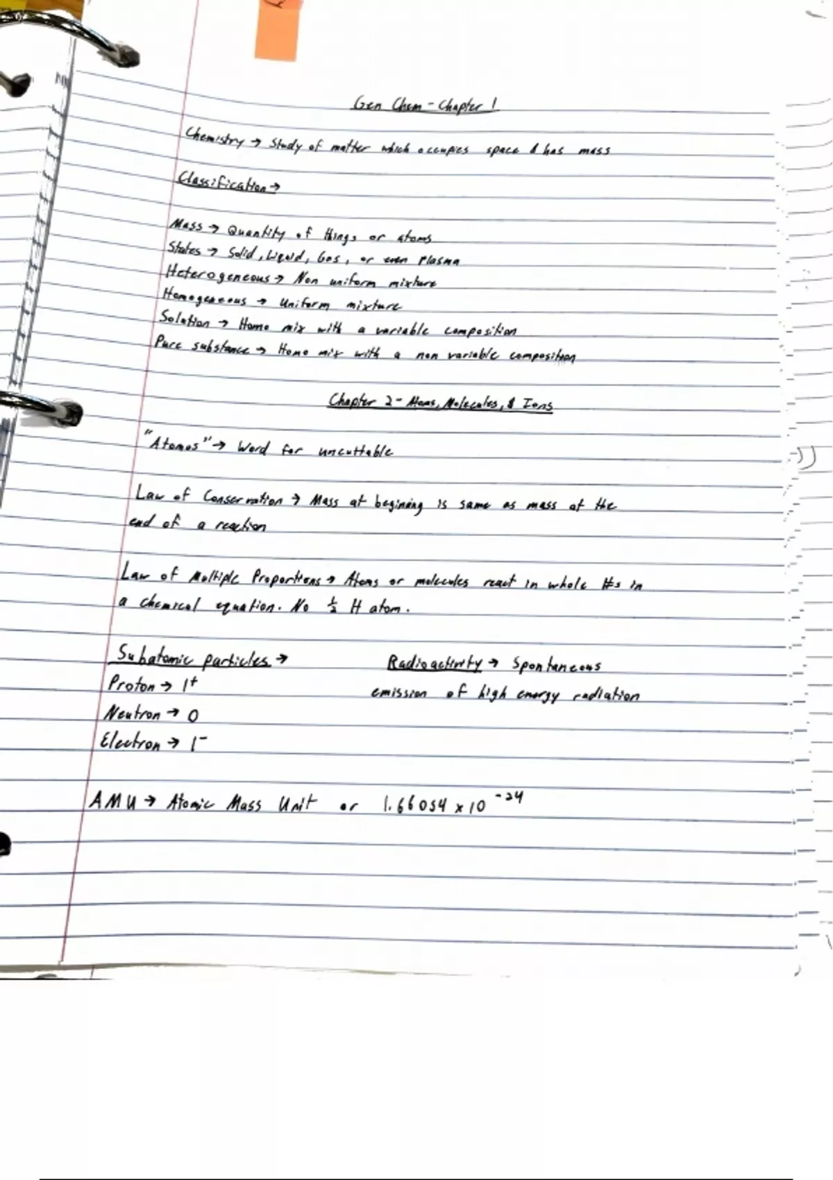 Notes of Gen Chem 121 class, beginners college chemistry. Covers most topics learned in class including thermochemistry, gas laws, ions, and electronic structures of atoms. Very useful and includes hand drawn diagrams for deeper understanding