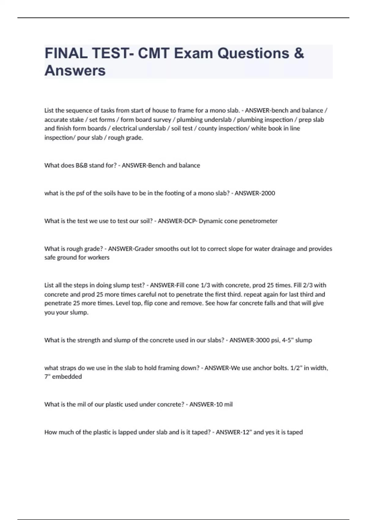 FINAL TEST- CMT Exam Questions & Answers