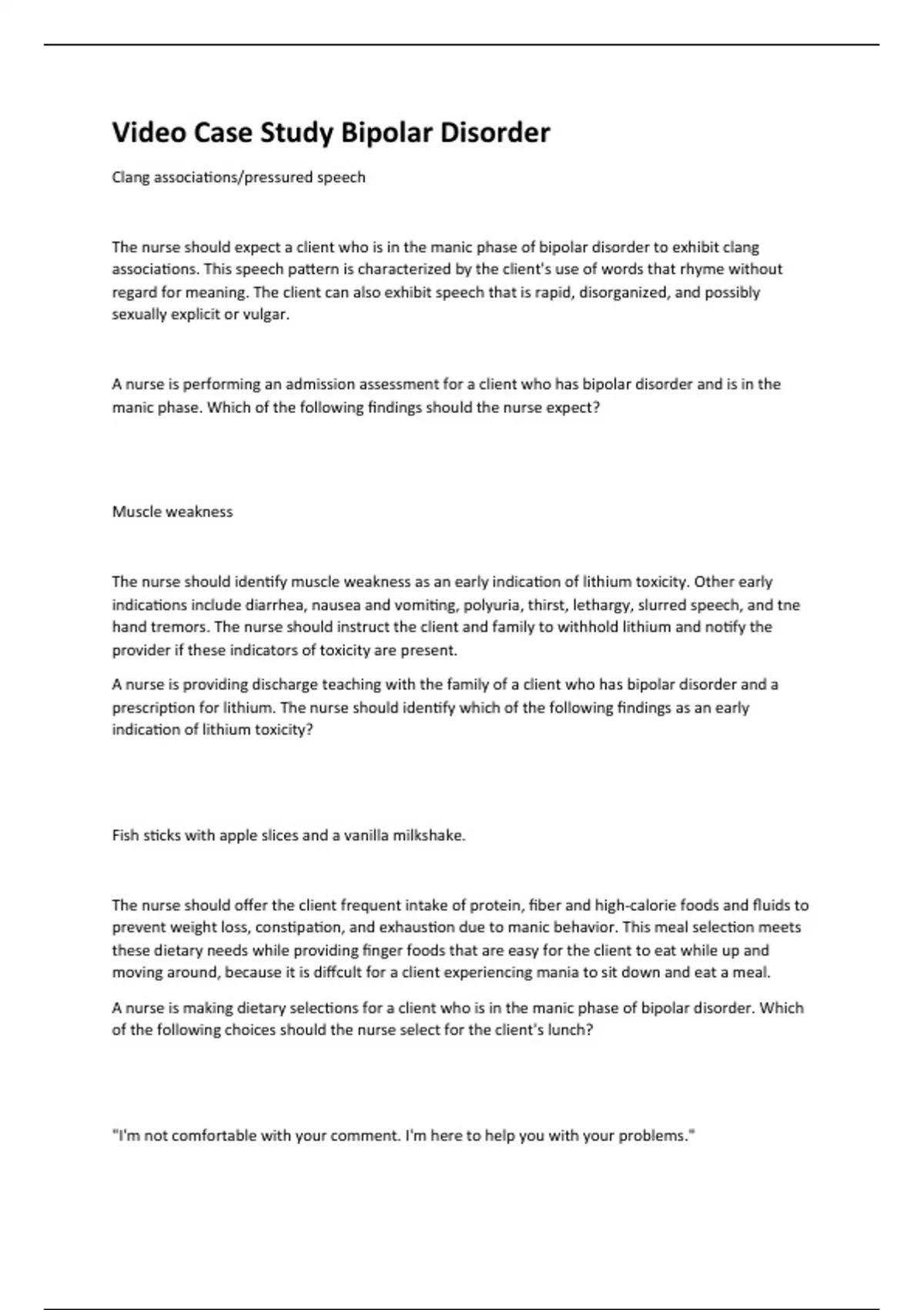 Video Case Study Bipolar Disorder (A+ GRADED 100% VERIFIED) LATEST 2023