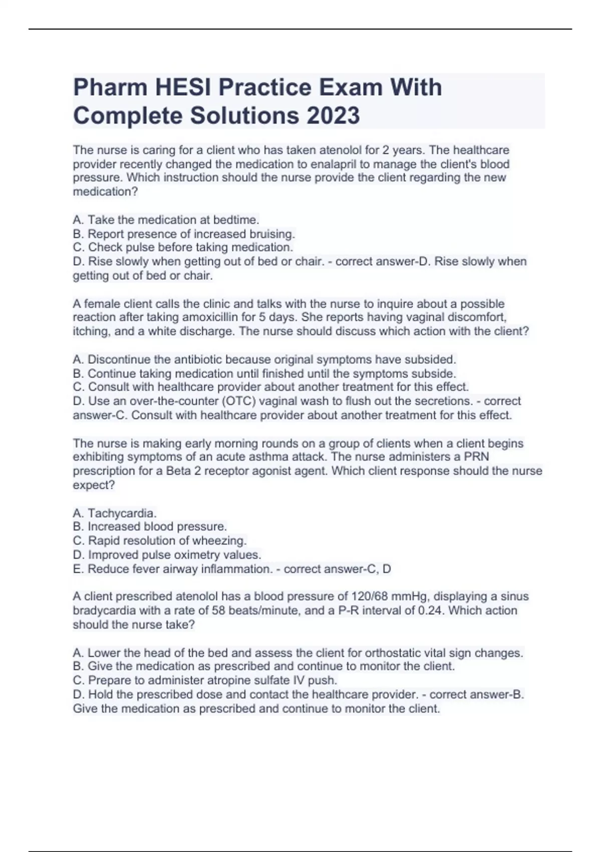 Pharm HESI Practice Exam With Complete Solutions 2023