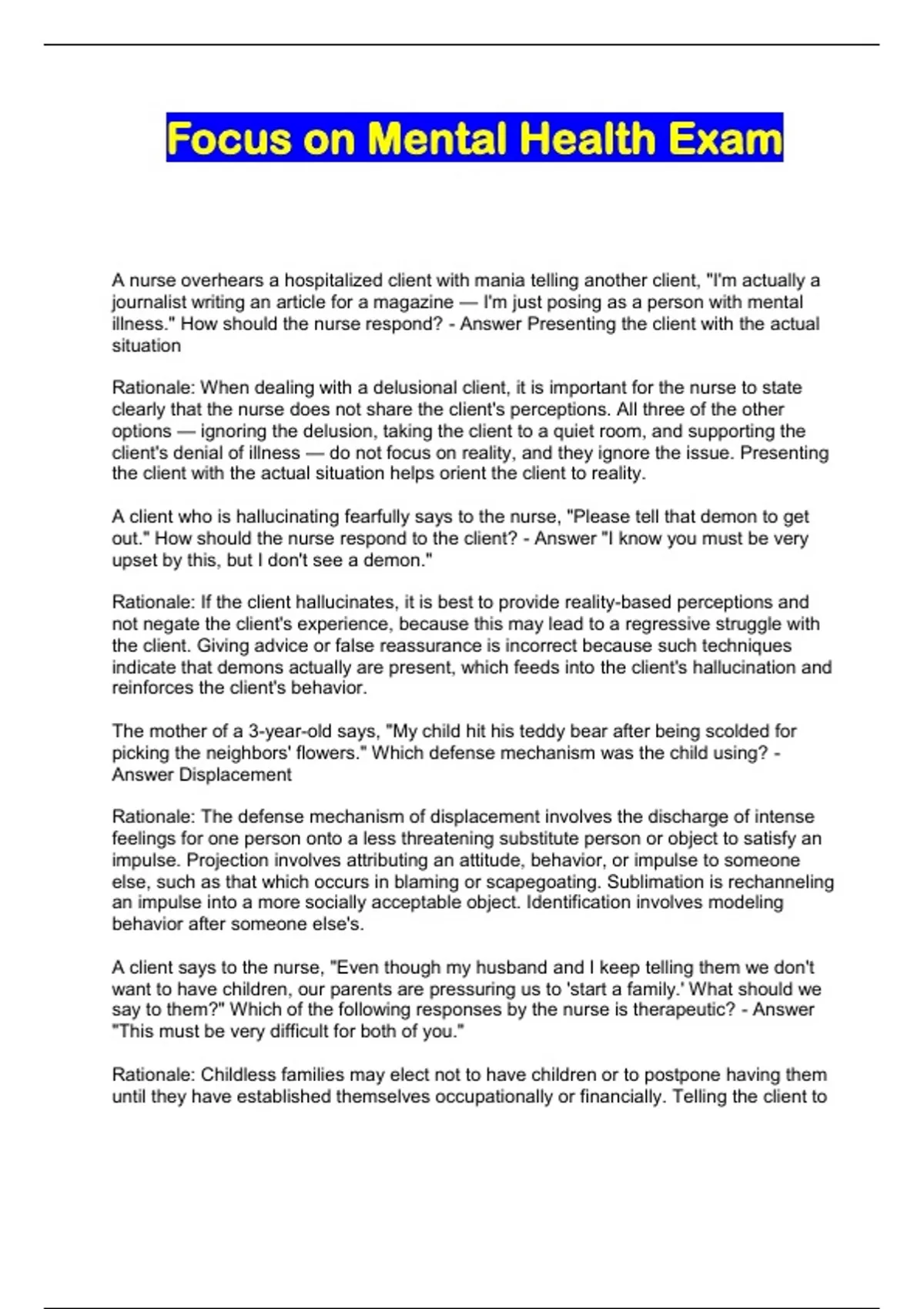 ALL MENTAL HEALTH PACKAGED EXAMS WITH COMPLETE SOLUTION
