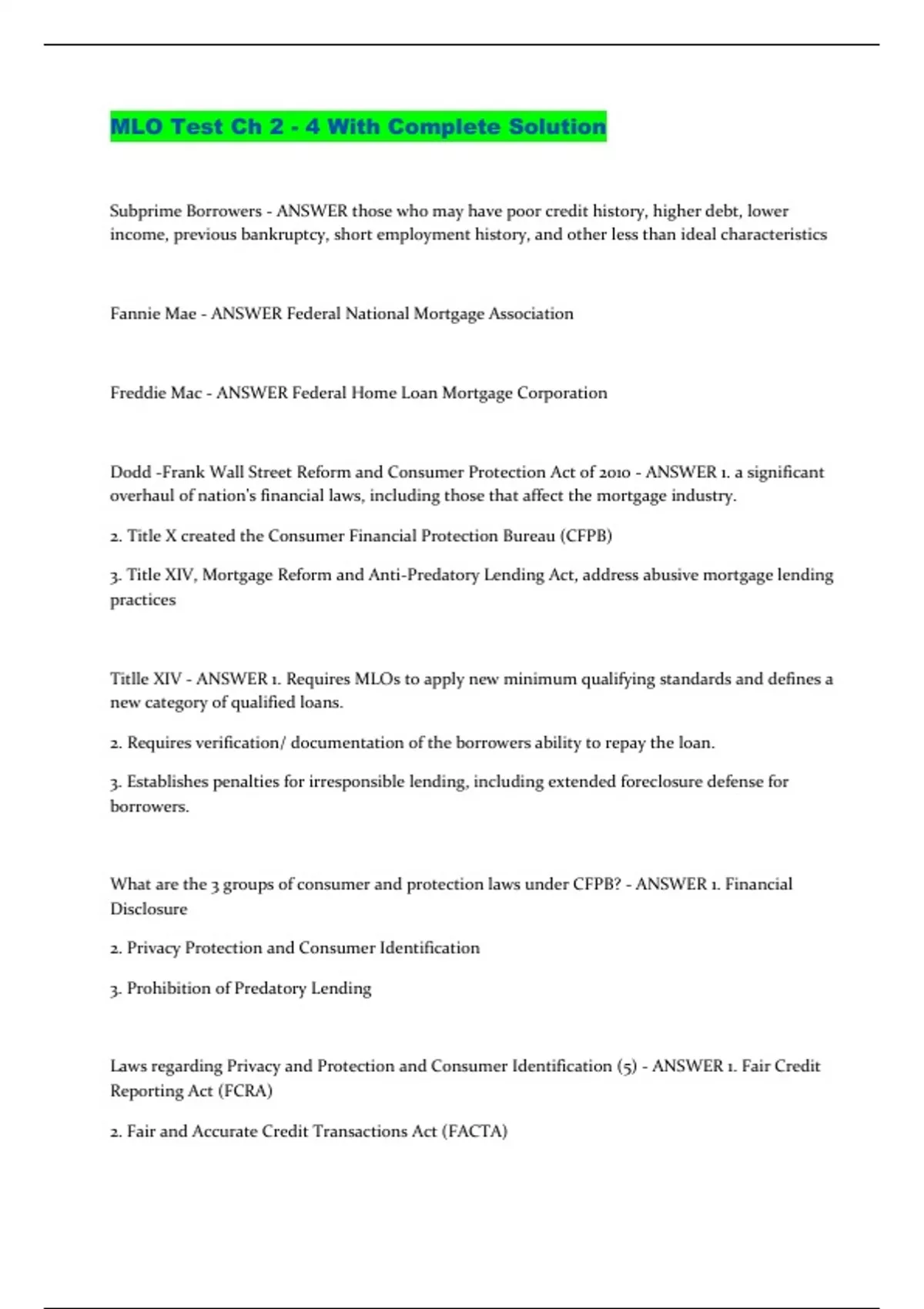 MLO Test Ch 2 - 4 With Complete Solution...