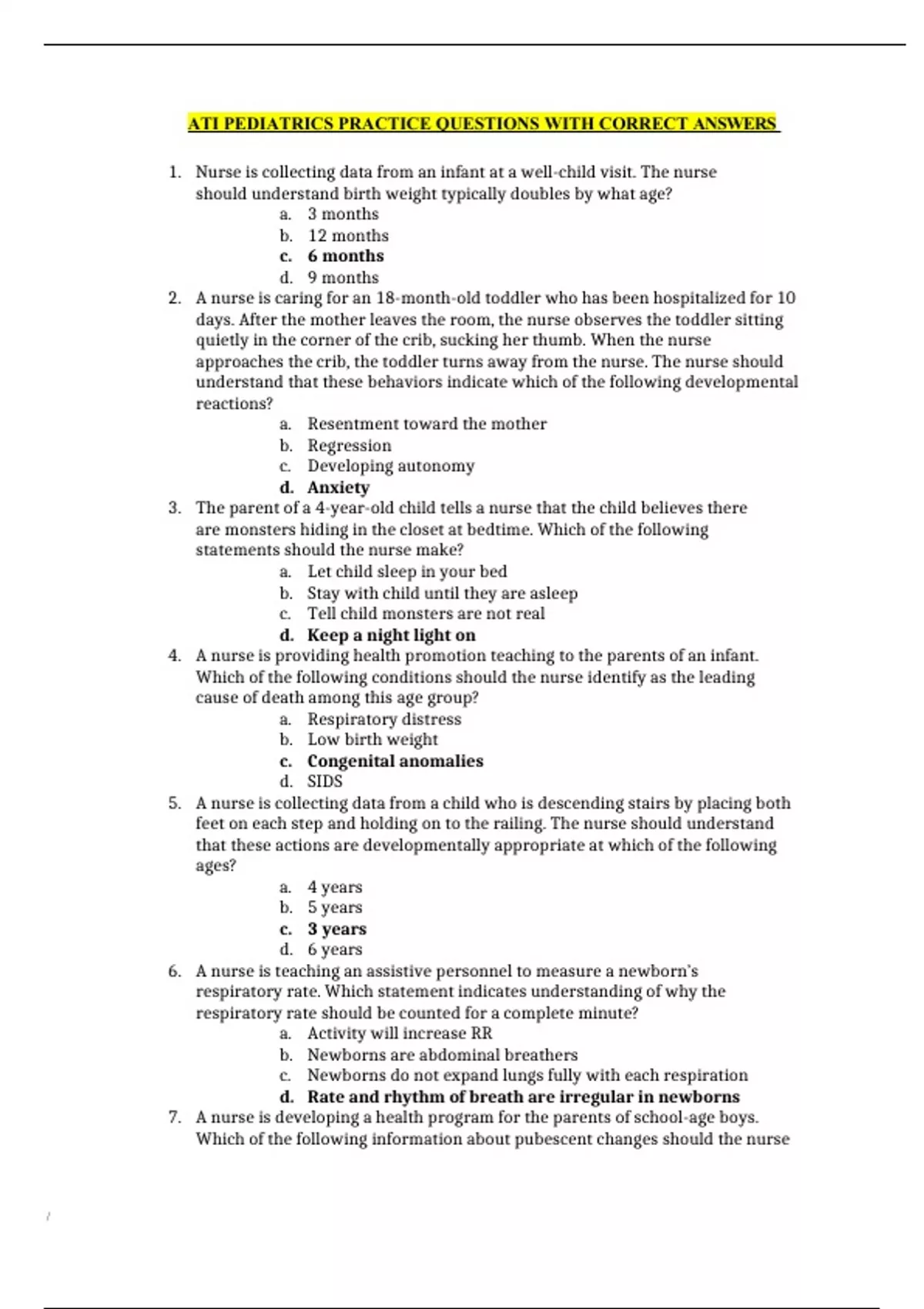 ATI PEDIATRICS PRACTICE QUESTIONS WITH CORRECT ANSWERS