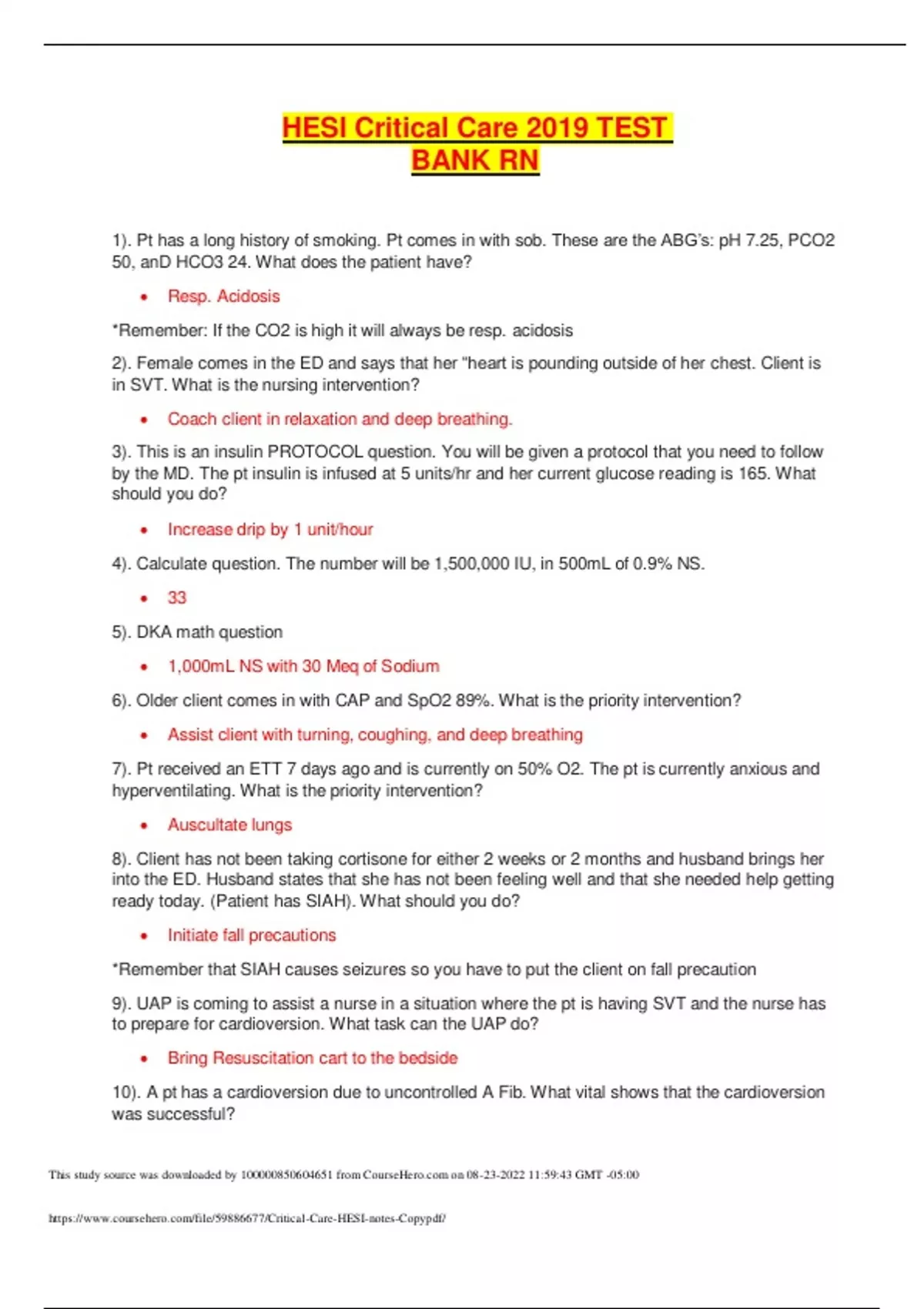 - HESI Critical Care 2019