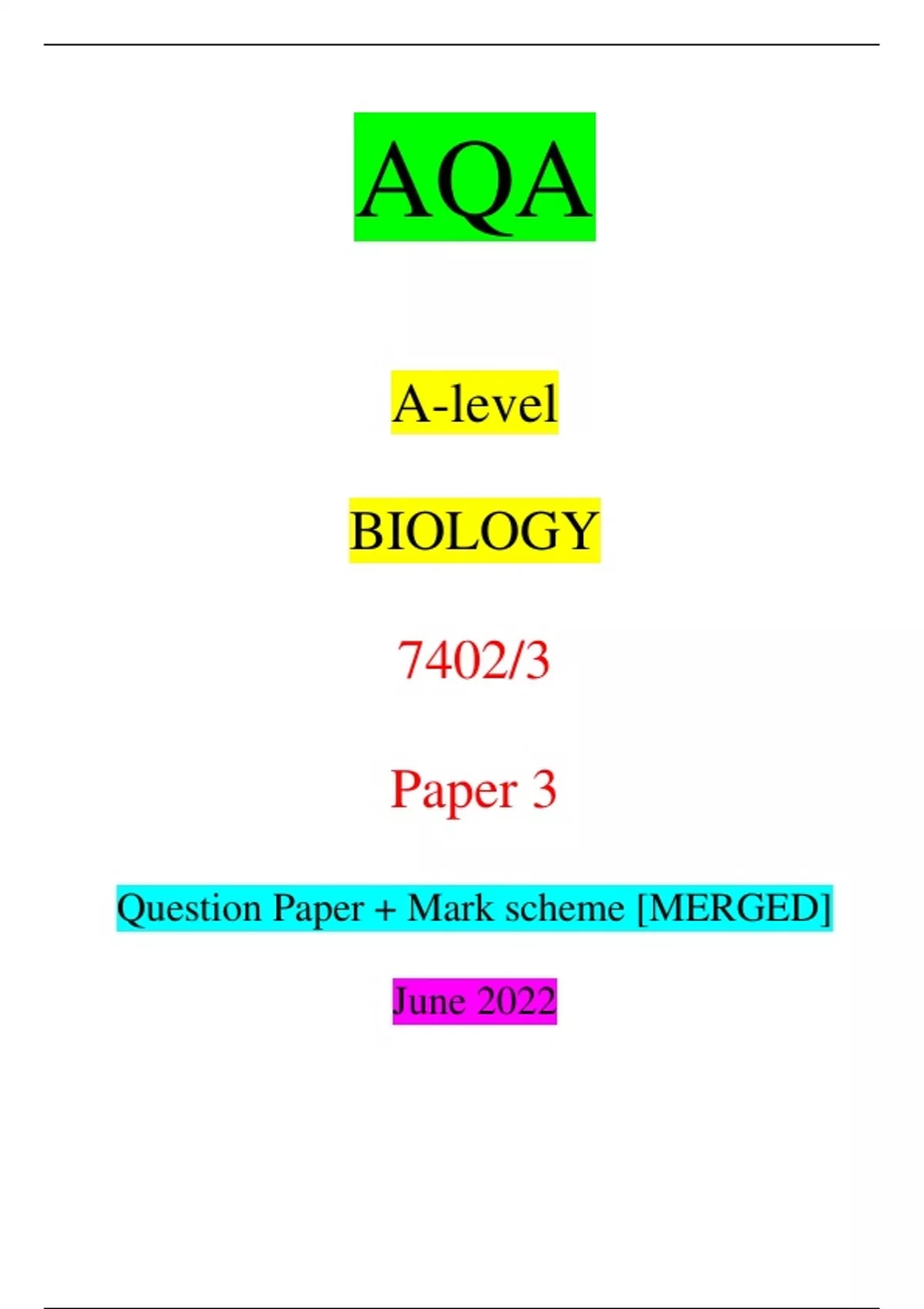AQA A-level BIOLOGY 7402/3 Paper 3 Question Paper + Mark scheme [MERGED] June 2022