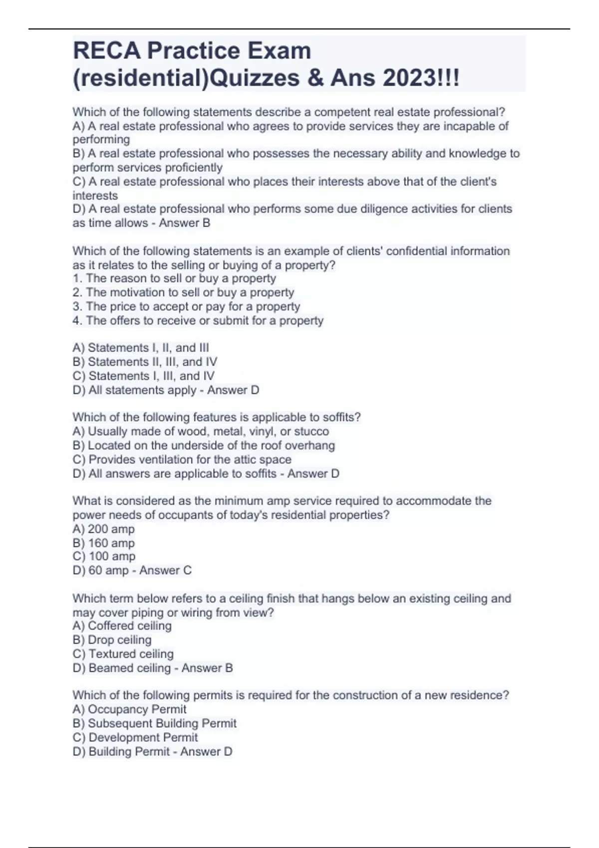 RECA Practice Exam (residential)Quizzes & Ans 2023!!!