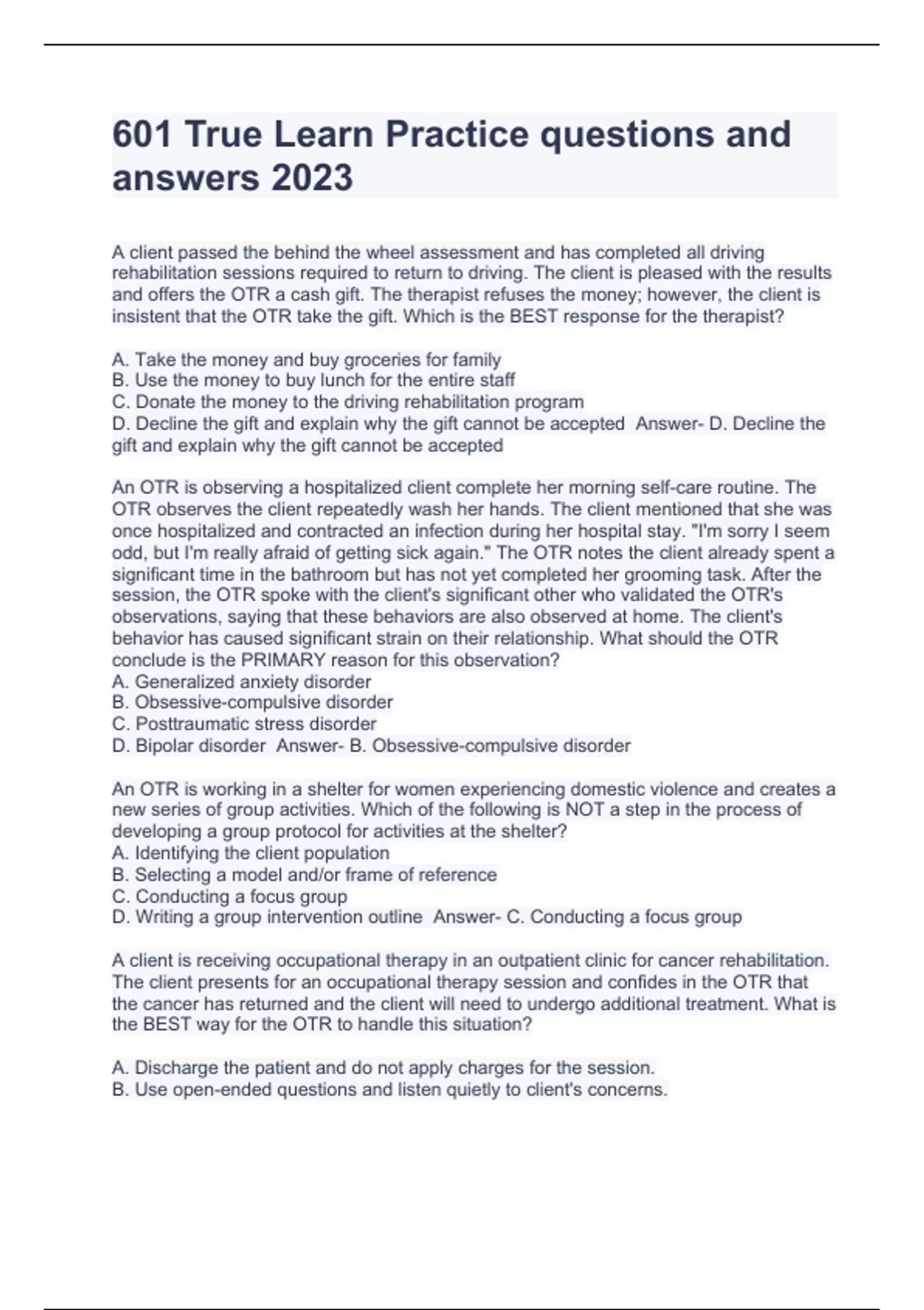 601 true learn practice questions and answers 2023