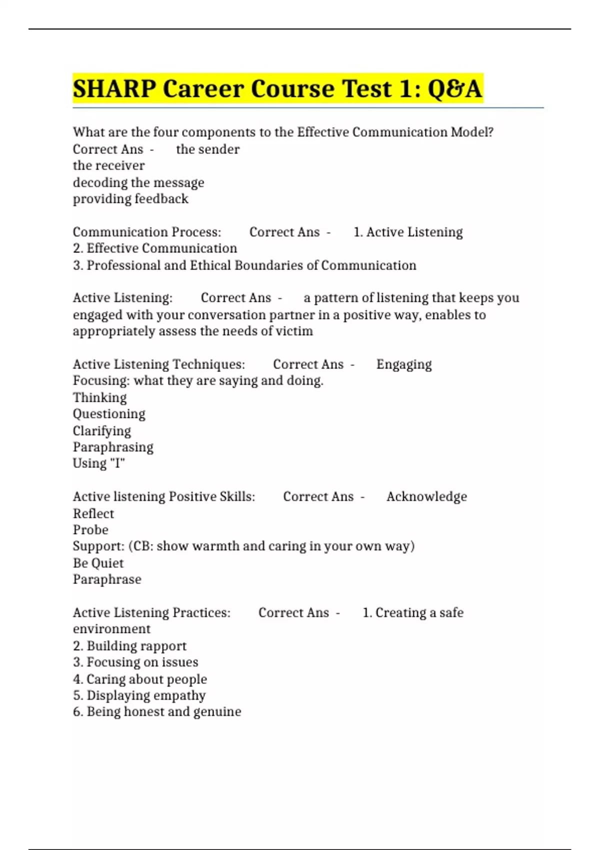 SHARP Career Course Test 1: Q&A