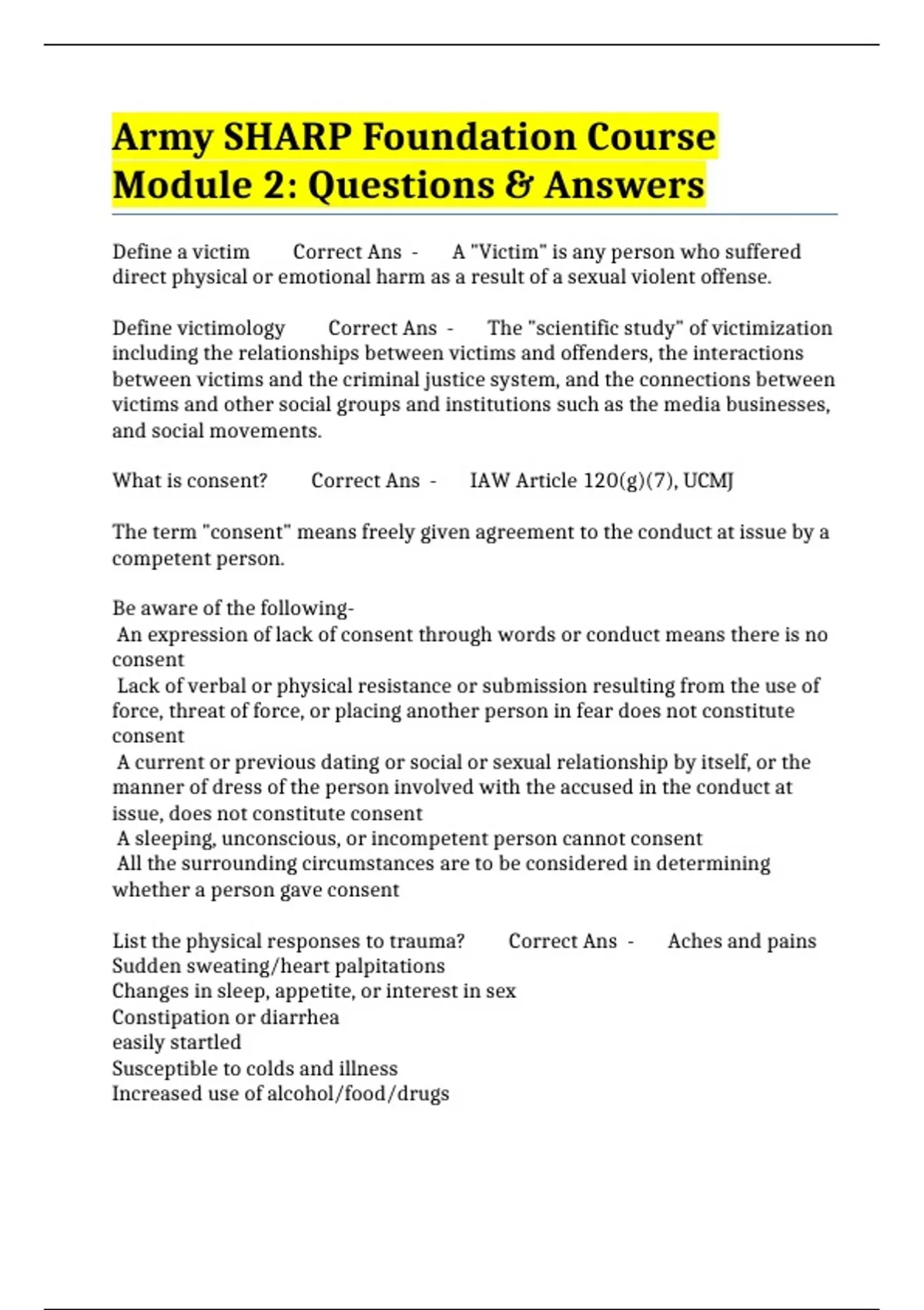 Army SHARP Foundation Course Module 2: Questions & Answers