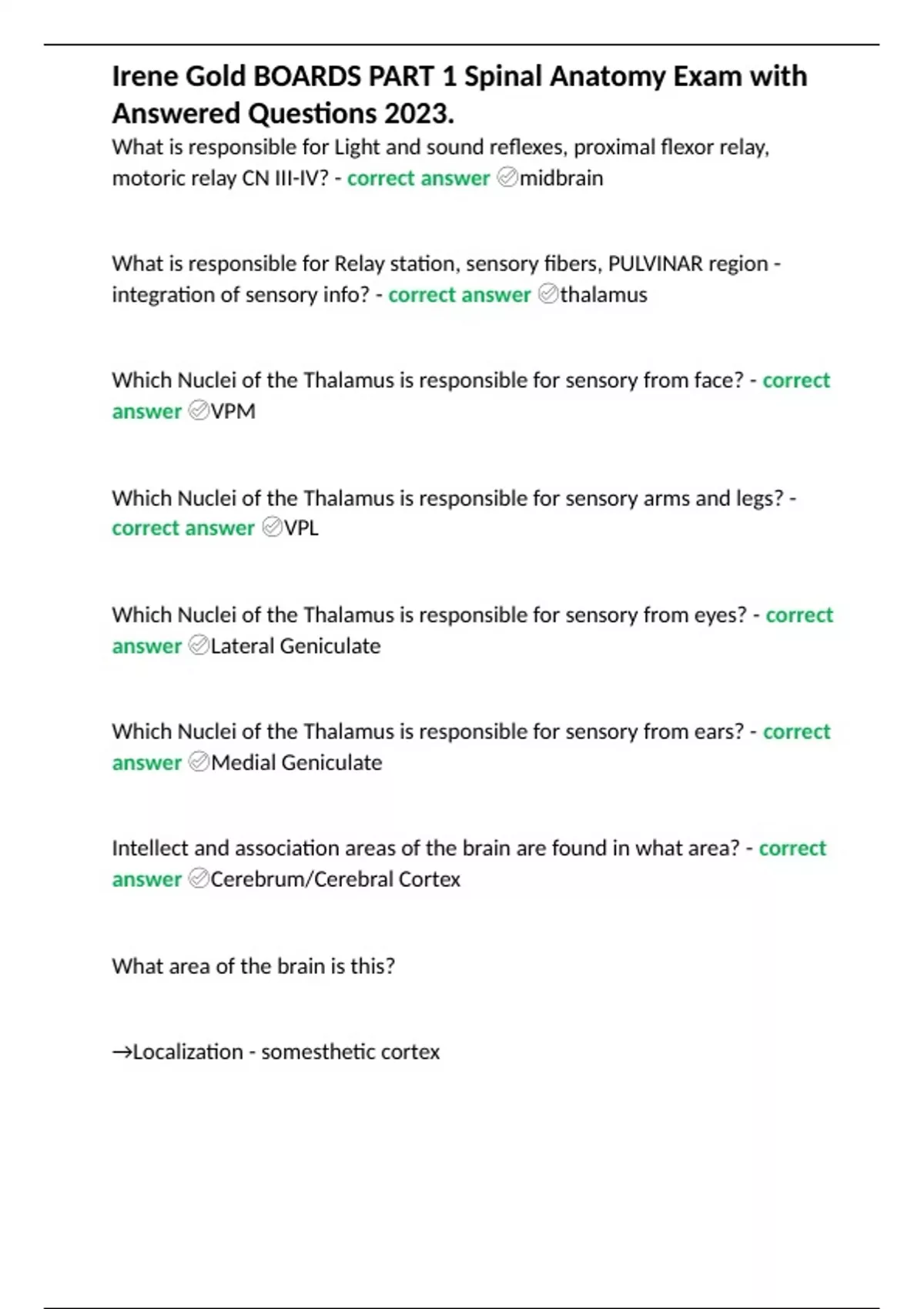 Irene Gold BOARDS PART 1 Spinal Anatomy Exam with Answered Questions 2023.