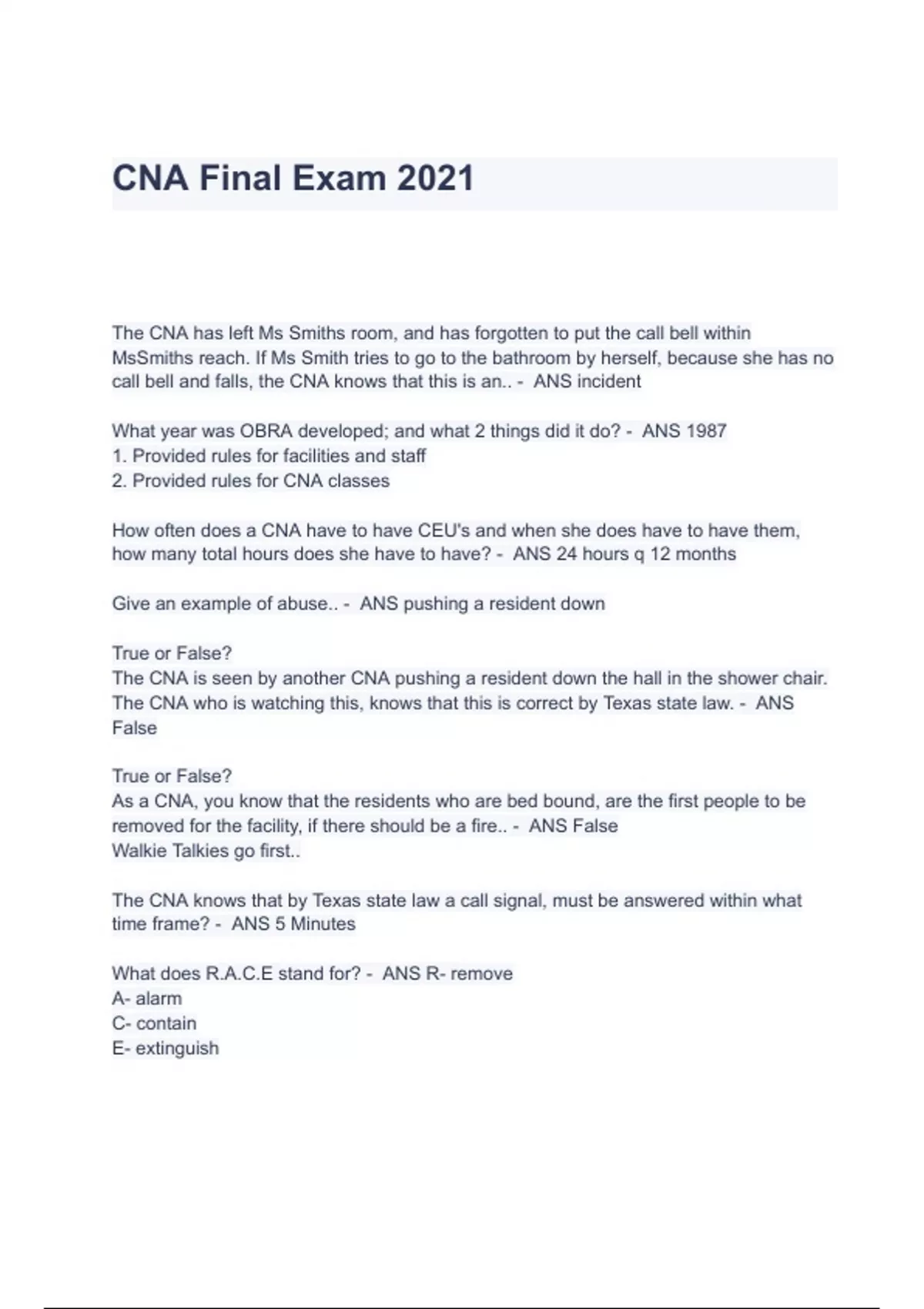 - cna final exam 2021