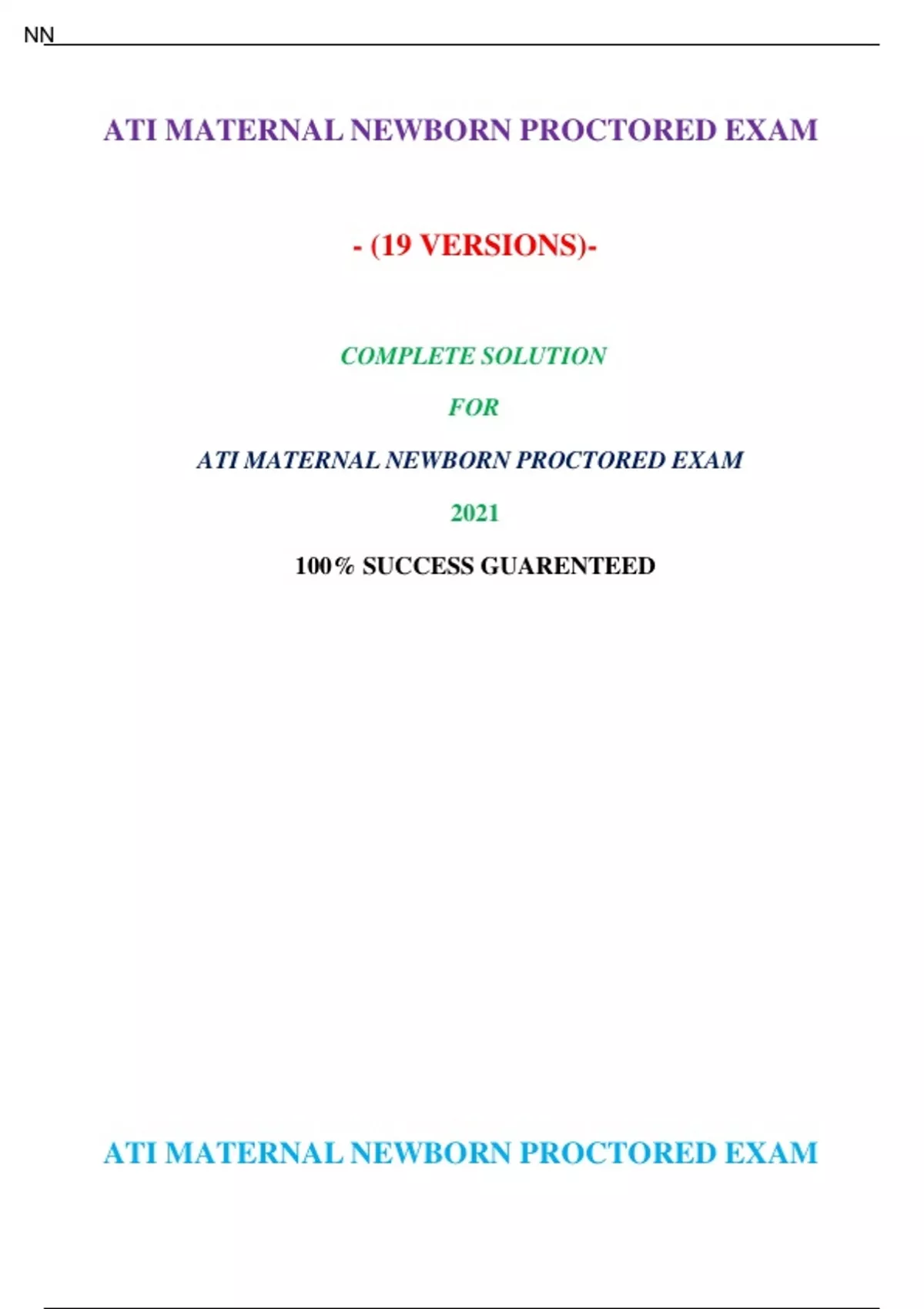 ATI RN Maternal Newborn Proctored 2019 Retake 2 - Study Guide