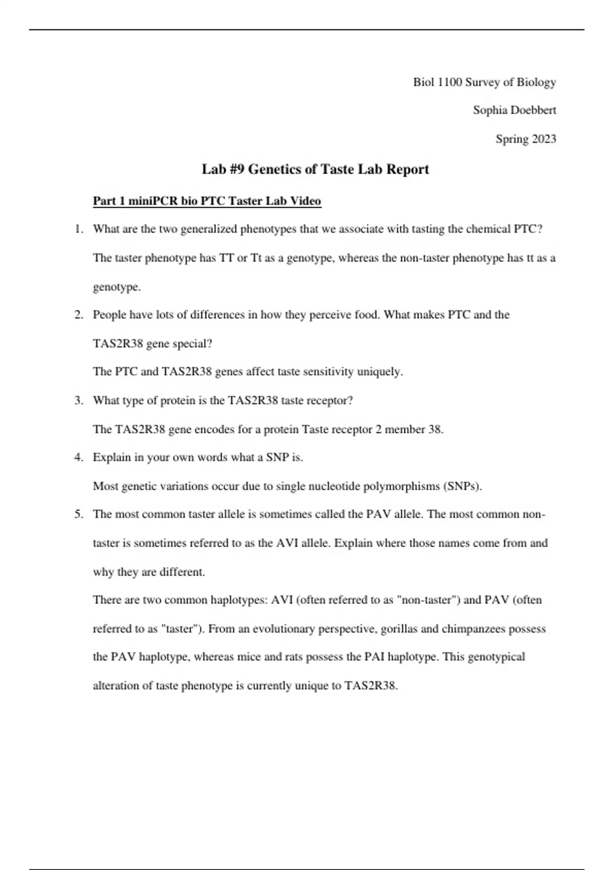 My lab report on the genetics of taste.